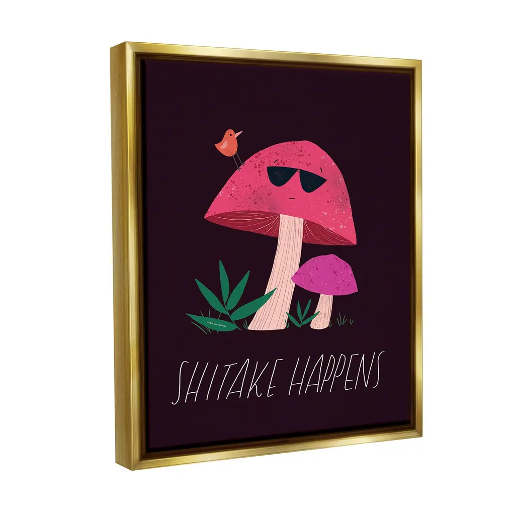Stupell Shitake Happens Mushroom Framed Floater Canvas Wall Art Design By Rachel Nieman - 25 X 31 - Gold