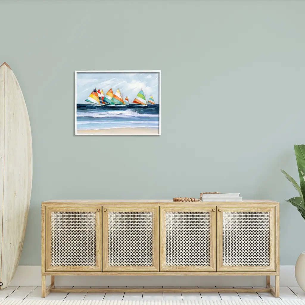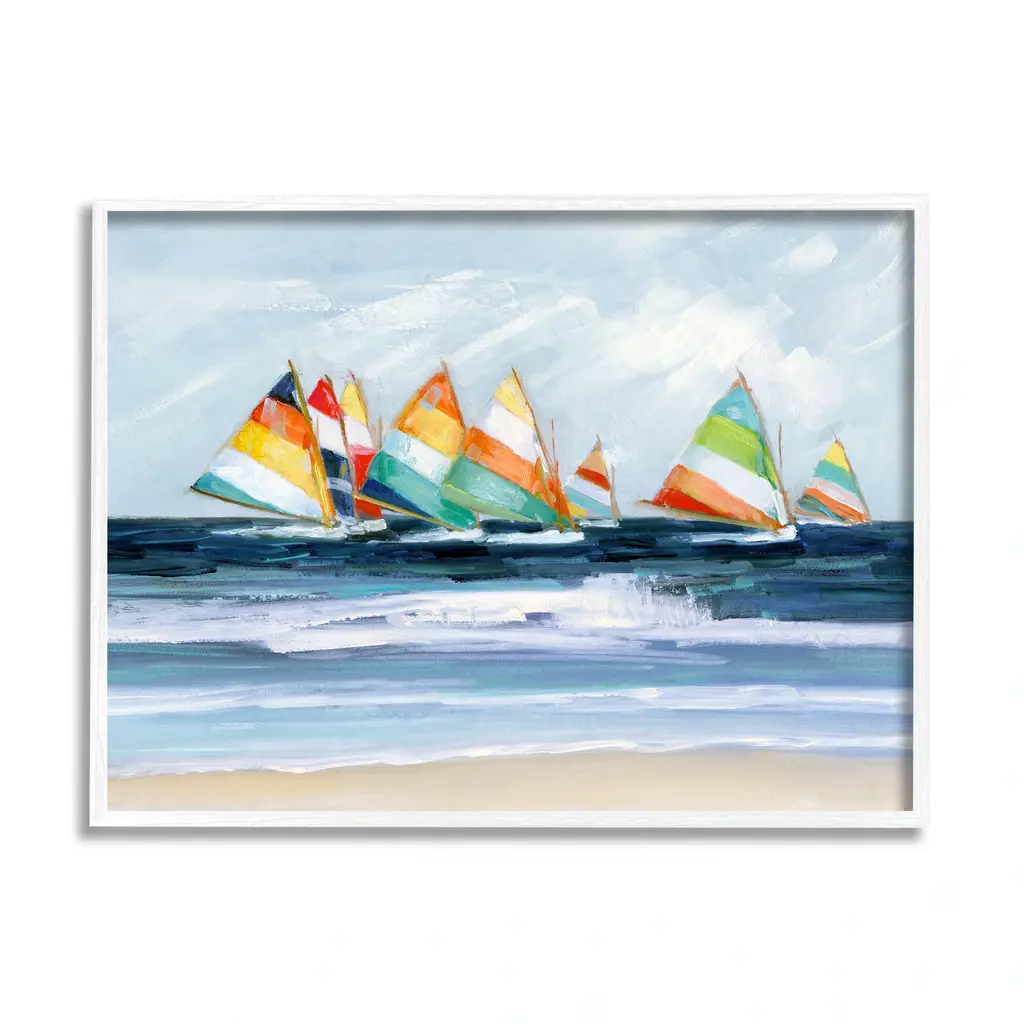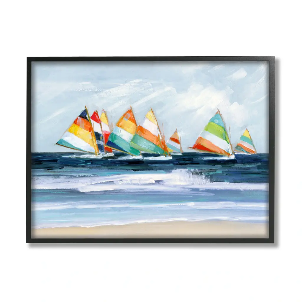 Stupell Shoreline Sailboat Race Striped Sails Coastal Painting Framed Wall Art - Orange - 14 X 11 - Black