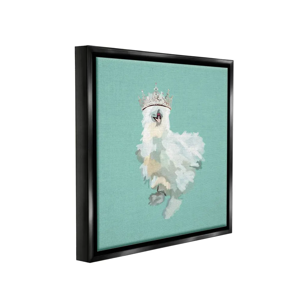 Elevate your home or office to the next level with Stupell Framed Floating Canvas Wall Art. Our premium hand-stretched canvas is mounted securely into a sturdy lightweight frame. The museum-style gap between the wrapped canvas and the box frame gives the illusion of floating artwork. Stupell Wall Art is made in the USA.Features: Dimensions: 18 x 1.7 x 18 Frame, 17 x 1.5 x 17 Canvas ArtFloating Frame Canvas Products are available in sizes 18"x18" and 25"x25". All Floating Frame Canvas Products have a 1.7" Depth.Wall Art is Ready to Hang with Hardware Free Hanging. No Installation required. For Easy Set Up Lean or Layer Artwork on Shelf or Against Wall. Artwork is Permently Fixed into the Frame.Our elevated 1.7" Thick Floating Frame is the perfect complement to our canvas style Wall Art. We use only the highest quality inks in house with industry leading printing solutions. Canvas is hand stretched over a durable wood foundation and then mounted securly into a Modern Box Frame. Made in the USA.Artwork Relates To: Animal, Tiara, Crown, Princess, Chicken, Hen, Bird, SilkieDesign by Amelia Noyes