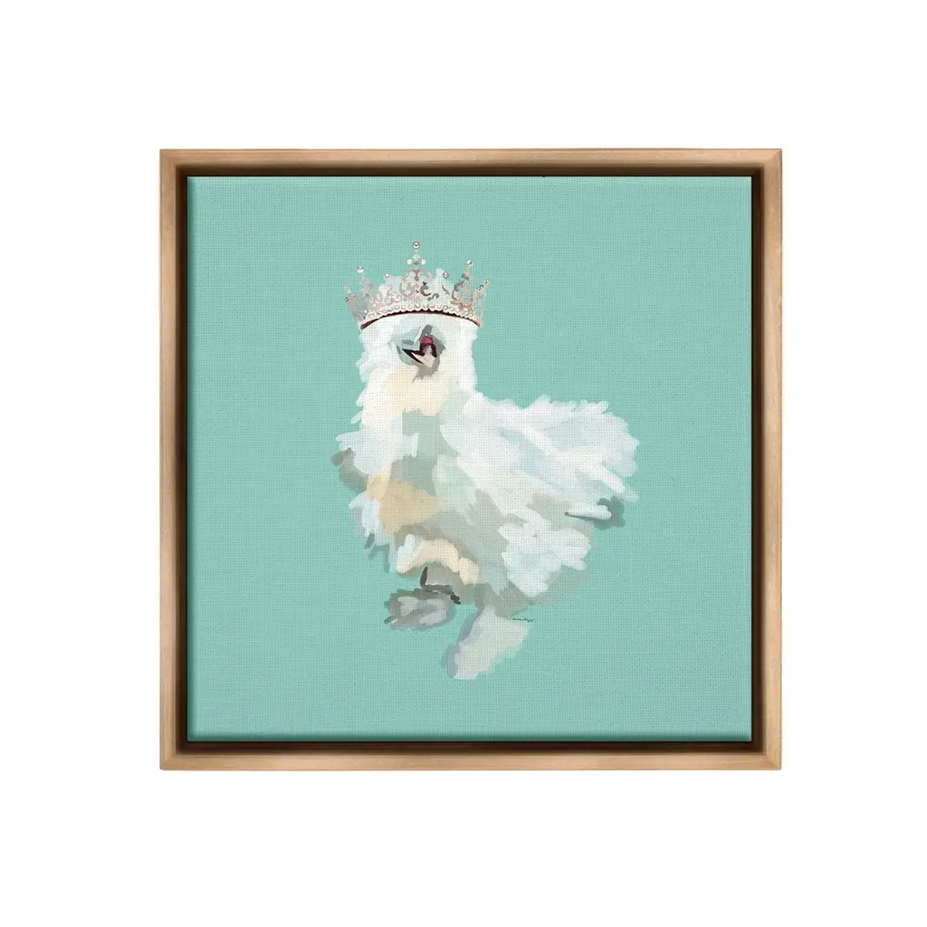 Elevate your home or office to the next level with Stupell Framed Floating Canvas Wall Art. Our premium hand-stretched canvas is mounted securely into a sturdy lightweight frame. The museum-style gap between the wrapped canvas and the box frame gives the illusion of floating artwork. Stupell Wall Art is made in the USA.Features: Dimensions: 18 x 1.7 x 18 Frame, 17 x 1.5 x 17 Canvas ArtFloating Frame Canvas Products are available in sizes 18"x18" and 25"x25". All Floating Frame Canvas Products have a 1.7" Depth.Wall Art is Ready to Hang with Hardware Free Hanging. No Installation required. For Easy Set Up Lean or Layer Artwork on Shelf or Against Wall. Artwork is Permently Fixed into the Frame.Our elevated 1.7" Thick Floating Frame is the perfect complement to our canvas style Wall Art. We use only the highest quality inks in house with industry leading printing solutions. Canvas is hand stretched over a durable wood foundation and then mounted securly into a Modern Box Frame. Made in the USA.Artwork Relates To: Animal, Tiara, Crown, Princess, Chicken, Hen, Bird, SilkieDesign by Amelia Noyes