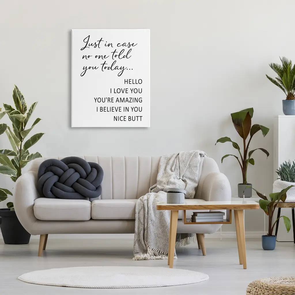 Proudly made in the USA, Our stretched canvas is created with the highest standards. We use only the highest quality inks and canvas on our in house Mimaki printers, and then hand cut and stretch each piece over a 1.5 inch thick wooden frame for hanging. The art comes ready to hang with no installation required.Features: Wall Art is Ready to Hang - No Installation or Hardware Needed. For Easy Set Up Lean or Layer Artwork on Shelf or Against Wall.Our stretched canvas is created with the highest standards. We use only the highest quality inks and canvas on our in house Mimaki printers, and then hand cut and stretch each piece over a 1.5 inch thick wooden frame for hanging. Made In USA.Artwork Relates To: Humor; Typography; CasualDesign by Lettered and Lined