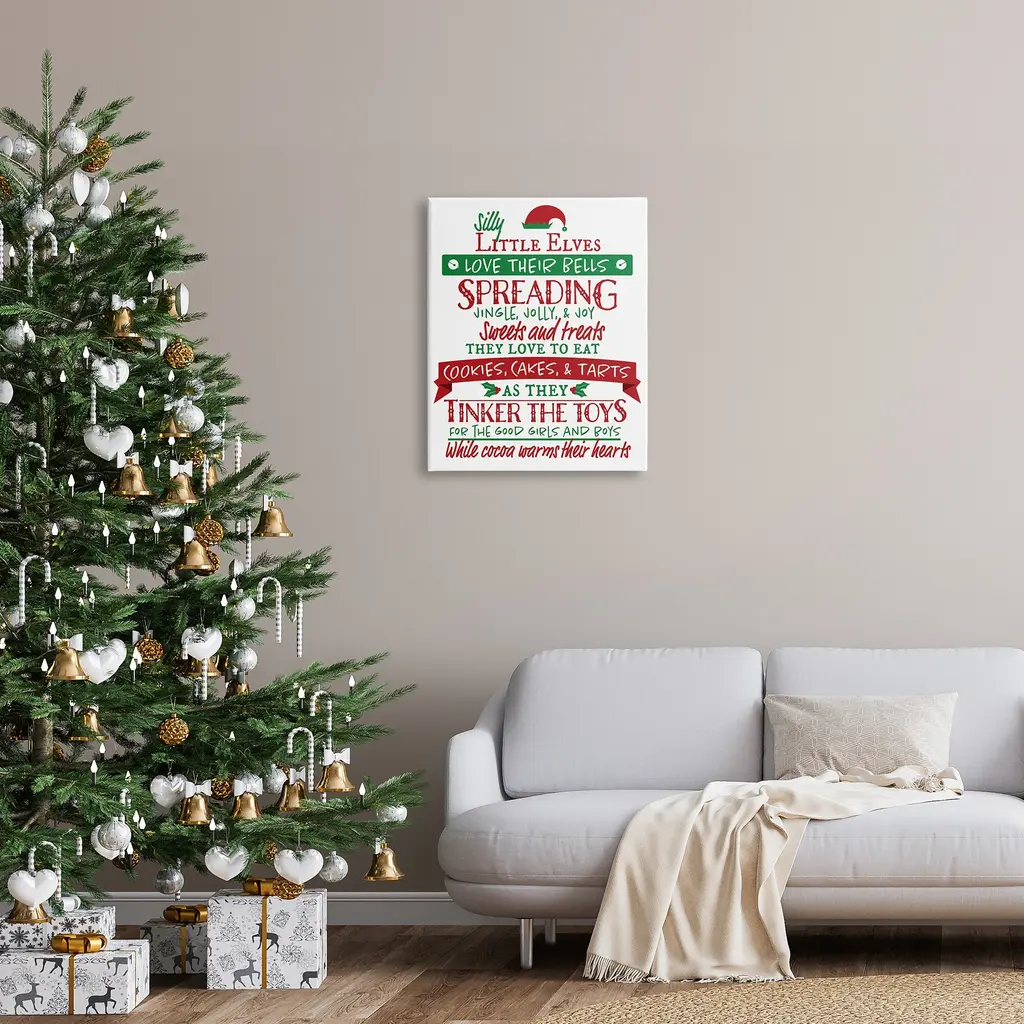 Stupell Silly Little Elves List Festive Christmas Phrases Canvas Wall Art - White - 24 X 30