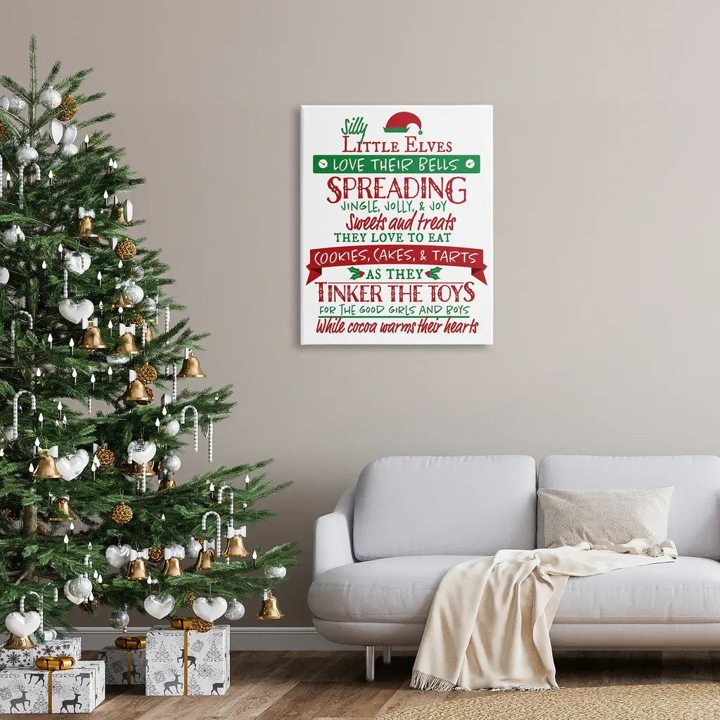 Stupell Silly Little Elves List Festive Christmas Phrases Canvas Wall Art - White - 30 X 40