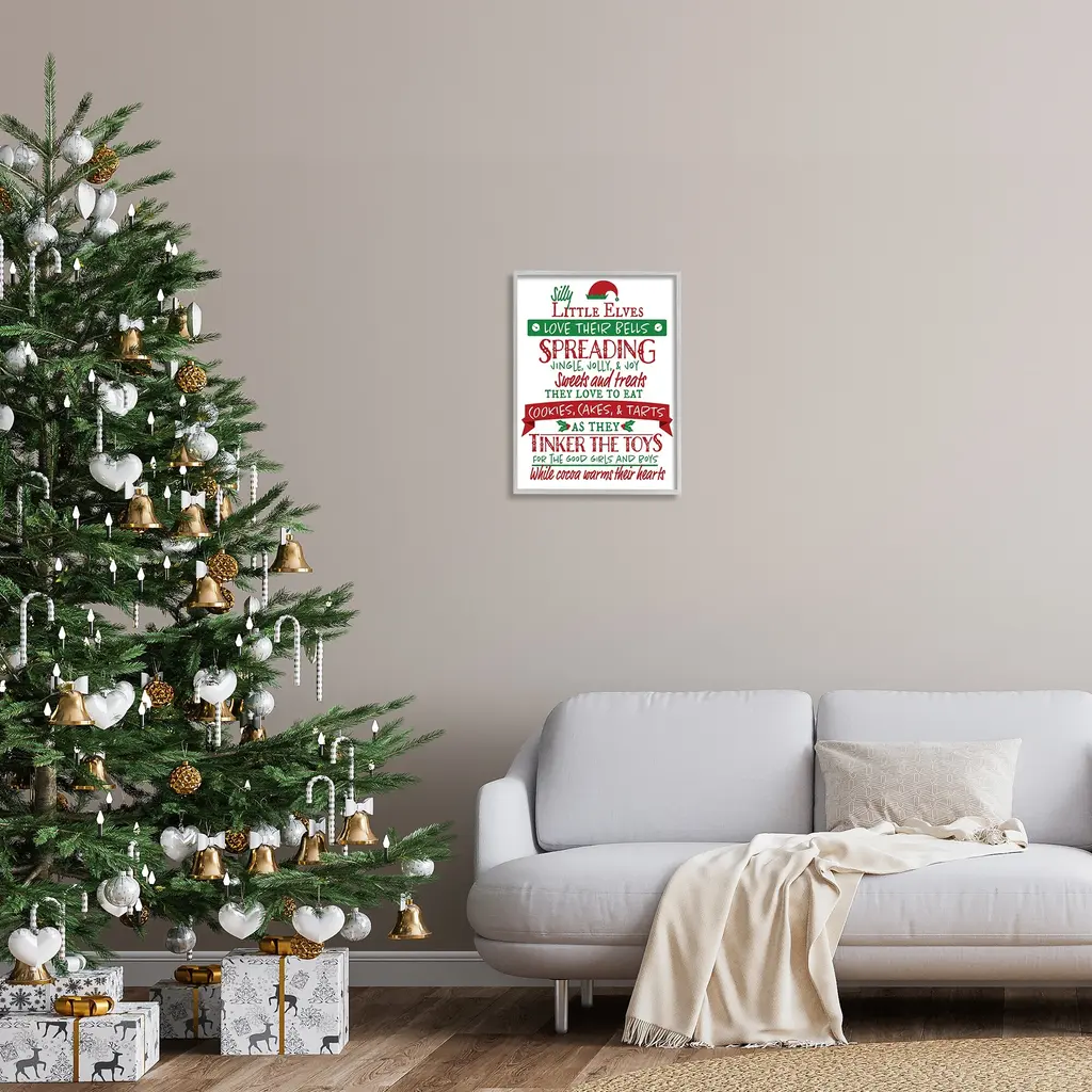 Stupell Silly Little Elves List Festive Christmas Phrases Framed Wall Art - 16 X 20 - Grey