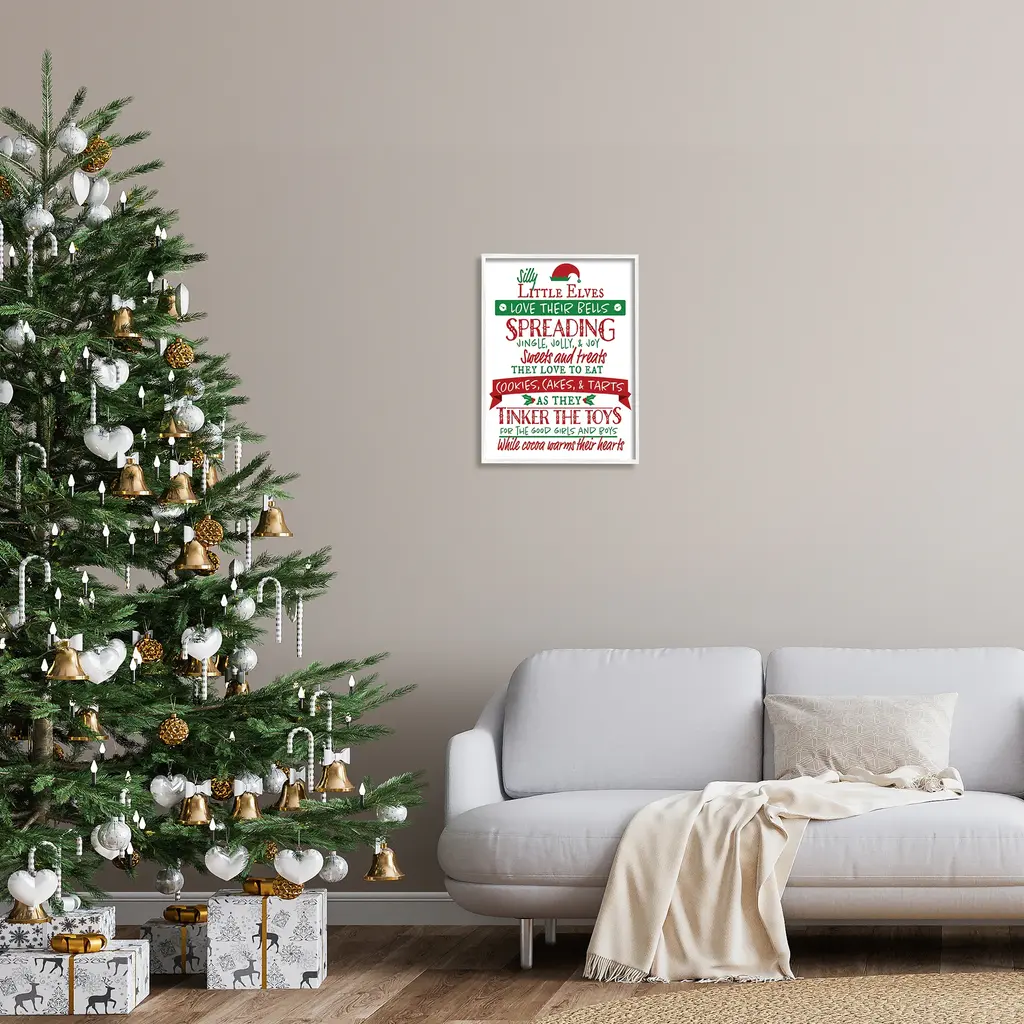 Stupell Silly Little Elves List Festive Christmas Phrases Framed Wall Art - 16 X 20 - White