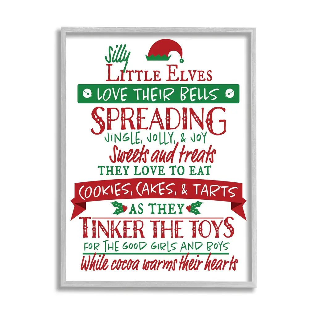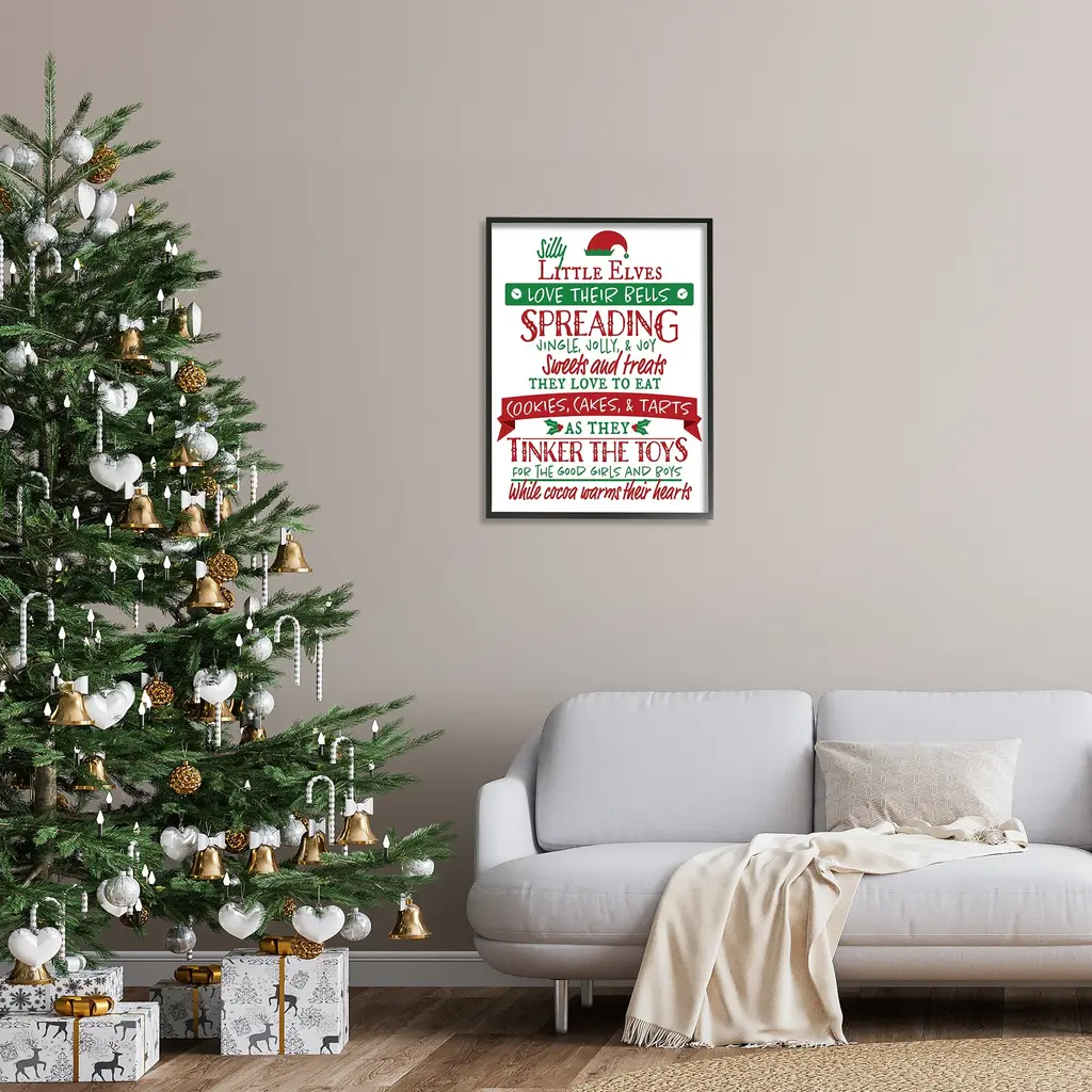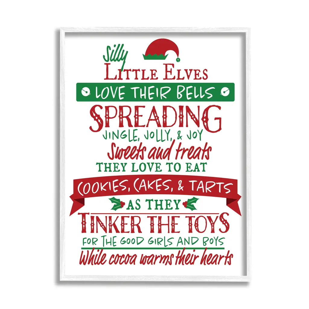 Stupell Silly Little Elves List Festive Christmas Phrases Framed Wall Art - 24 X 30 - Black