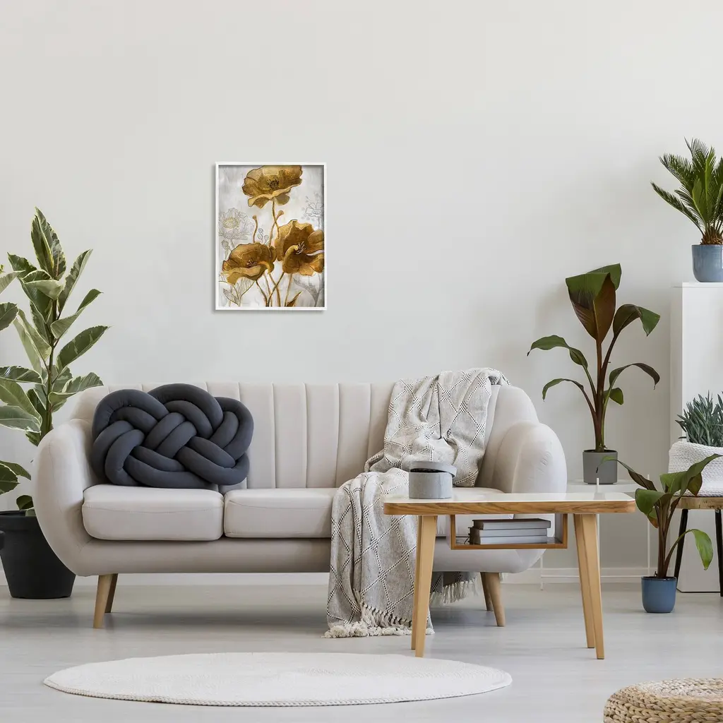 Stupell Silver And Gold Poppies Abstract Flower Field Framed Giclee Texturized Art By Studio W - 16 X 20 - Black