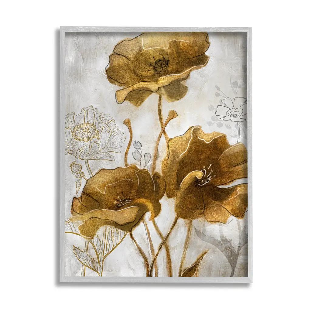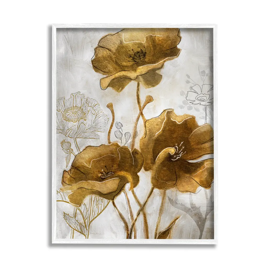 Stupell Silver And Gold Poppies Abstract Flower Field Framed Giclee Texturized Art By Studio W - 24 X 30 - White