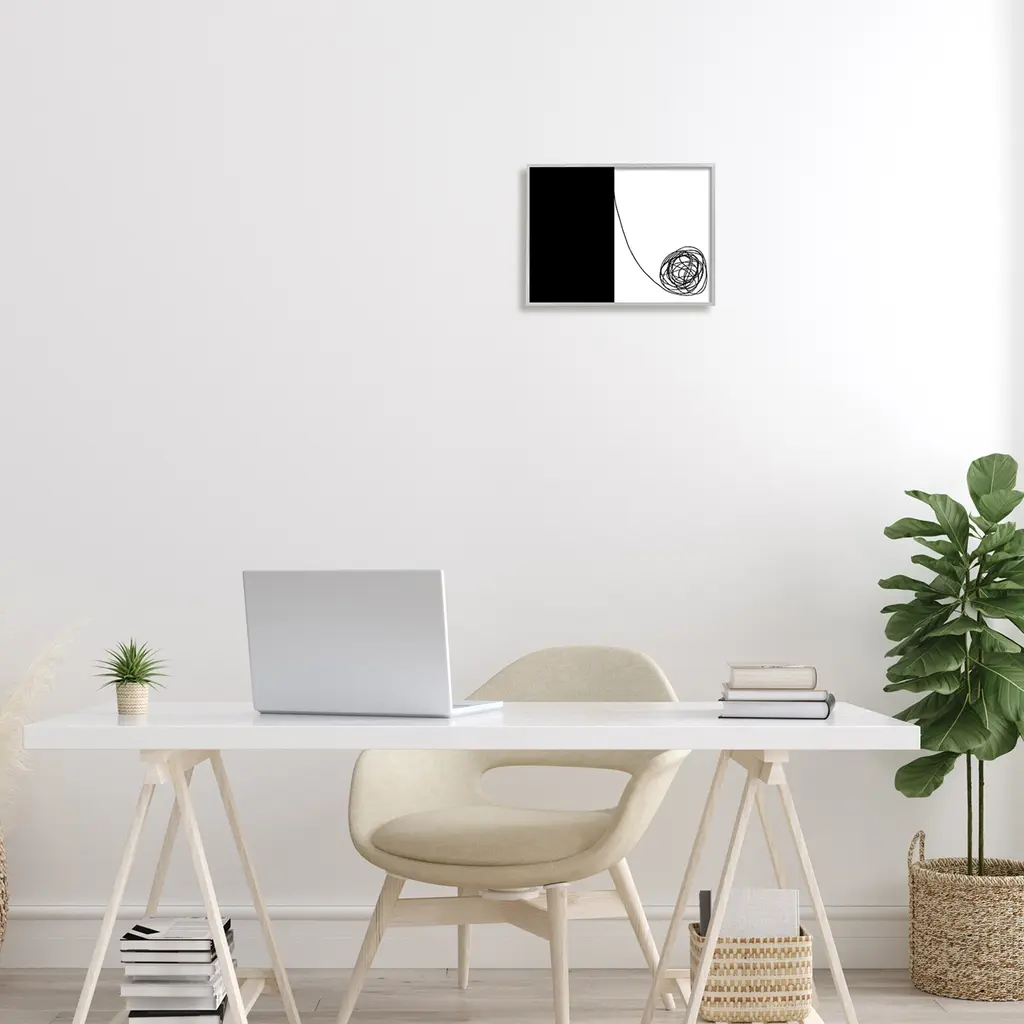 Stupell Simple Abstract Modern Black And White Scribble Framed Wall Art - 14 X 11 - Grey