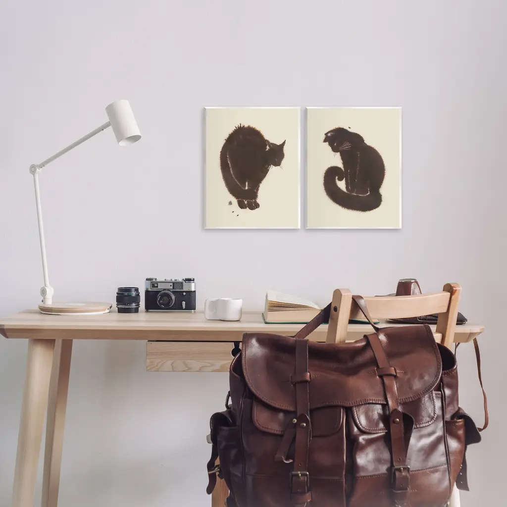 Fill any space with Stupell Wall Art Sets. Our wall plaques start as high-quality lithograph prints mounted on durable 0.5-inch thick MDF wood. Each piece is hand finished and comes with a fresh layer of white foil on the sides to give it a crisp, clean look. Plaques arrive ready to hang without installation and come with removable plastic corners to keep them from damage in transit. Stupell Wall Art is made in the USA.Features: Dimensions: 2 Piece Set, Each Panel is 11 x 0.5 x 14 InchesWall Art is Ready to Hang with Hardware Free Hanging. No installation required. For Easy Set Up Lean or Layer Artwork on Shelf or Against Wall.All of our wall plaques start off as high quality lithograph prints that are then mounted on durable 0.5 inch thick MDF wood. Each piece is hand finished and comes with a fresh layer of foil on the sides to give it a crisp clean look. Made In USA.Artwork Relates To: Animal, Pet, Cat, Simple, MinimalDesign by Grace Popp