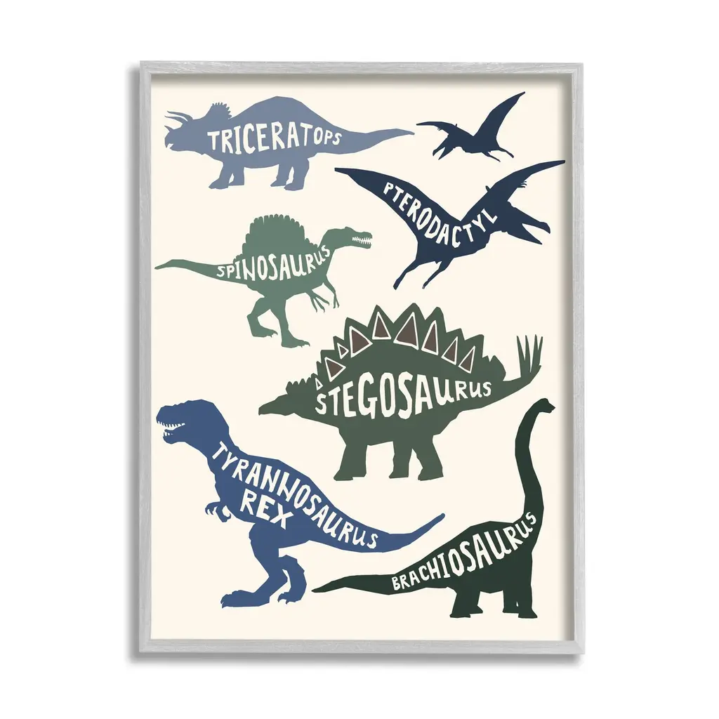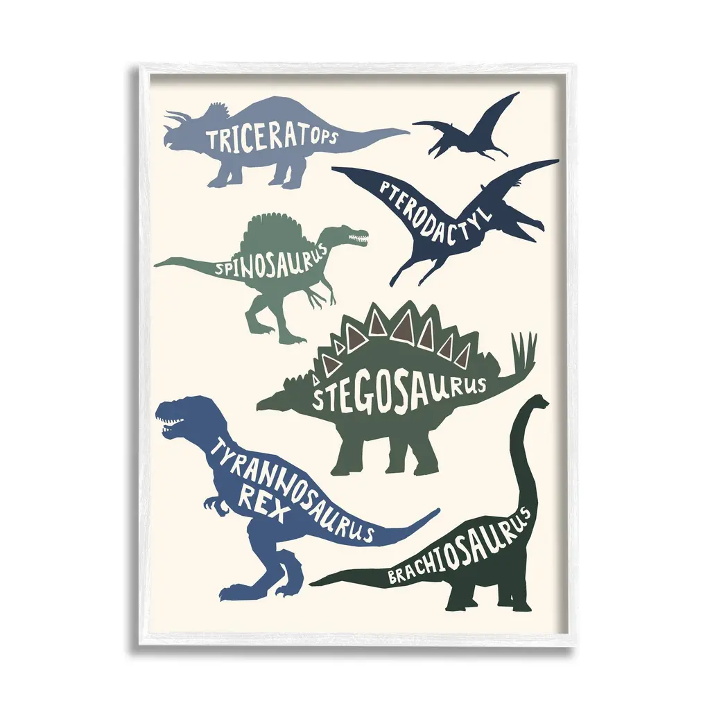 Stupell Simple Dinosaur Types Silhouette Names Diagram Framed Wall Art - Blue - 11 X 14 - Black
