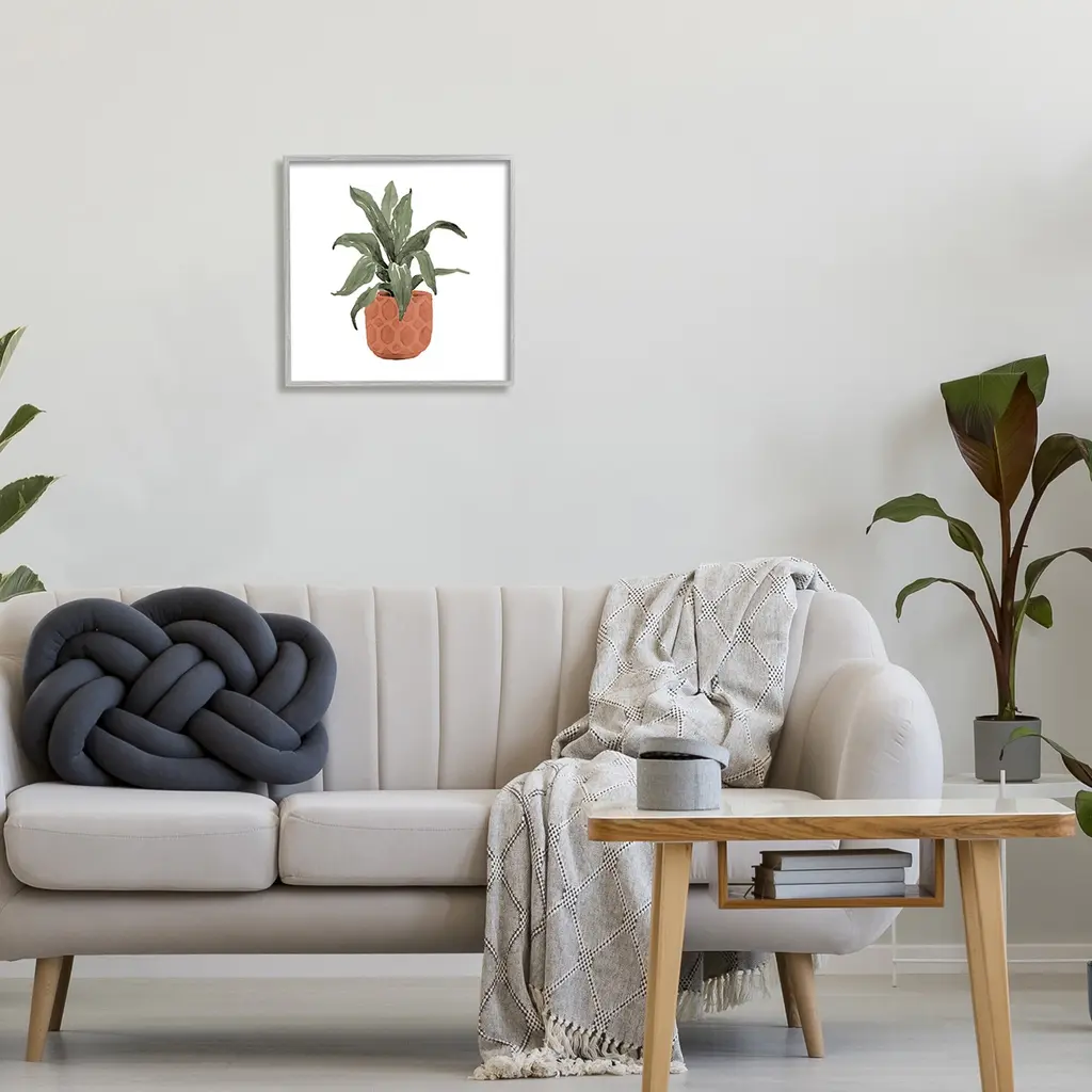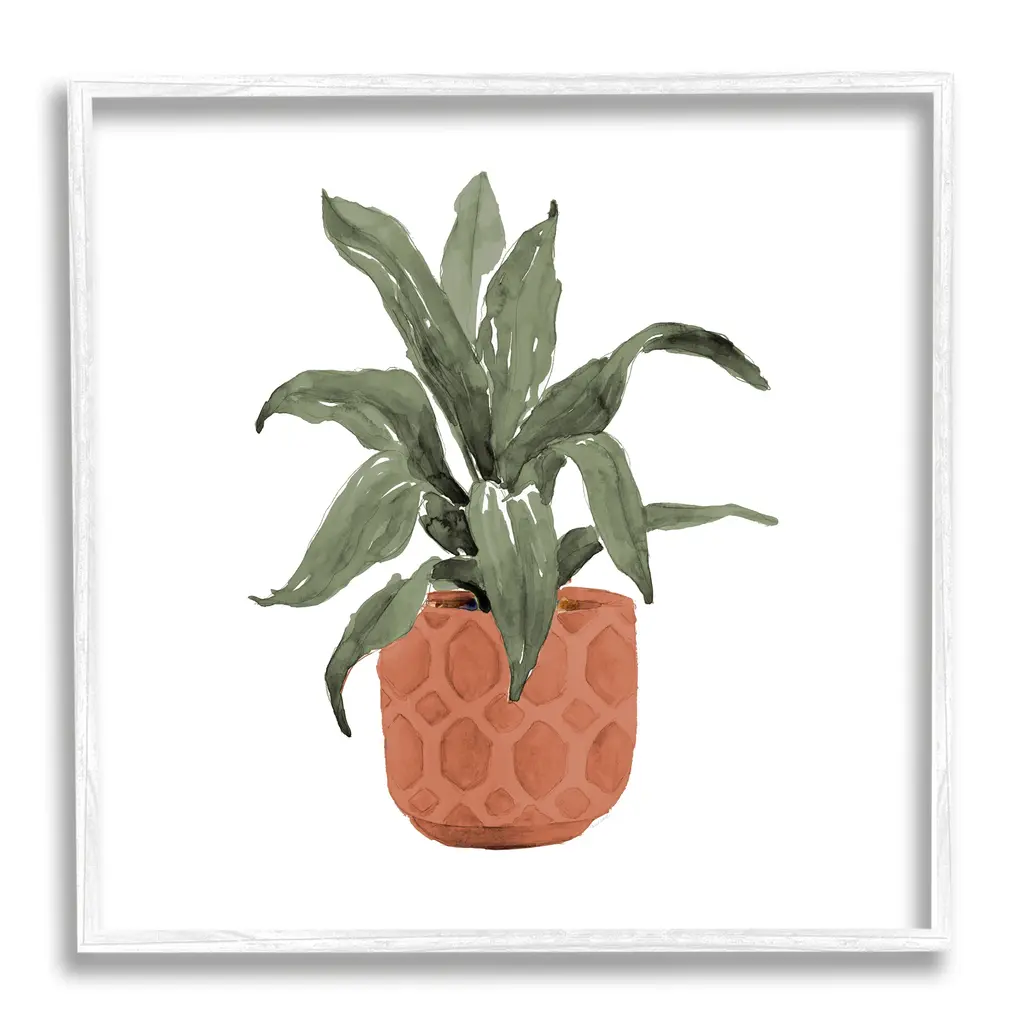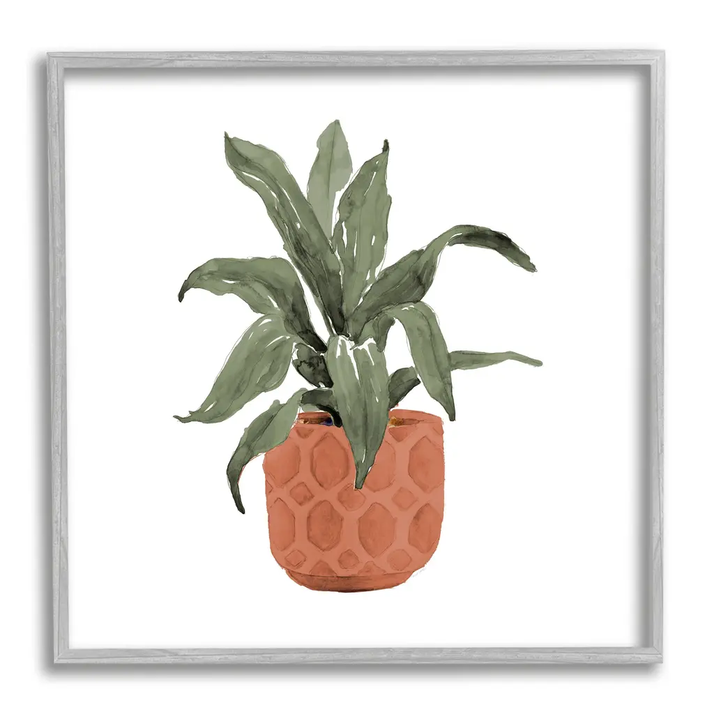 Stupell Simple House Plant Green Leaves Terracotta Planter Painting Framed Wall Art - Brown - 12 X 12 - Black