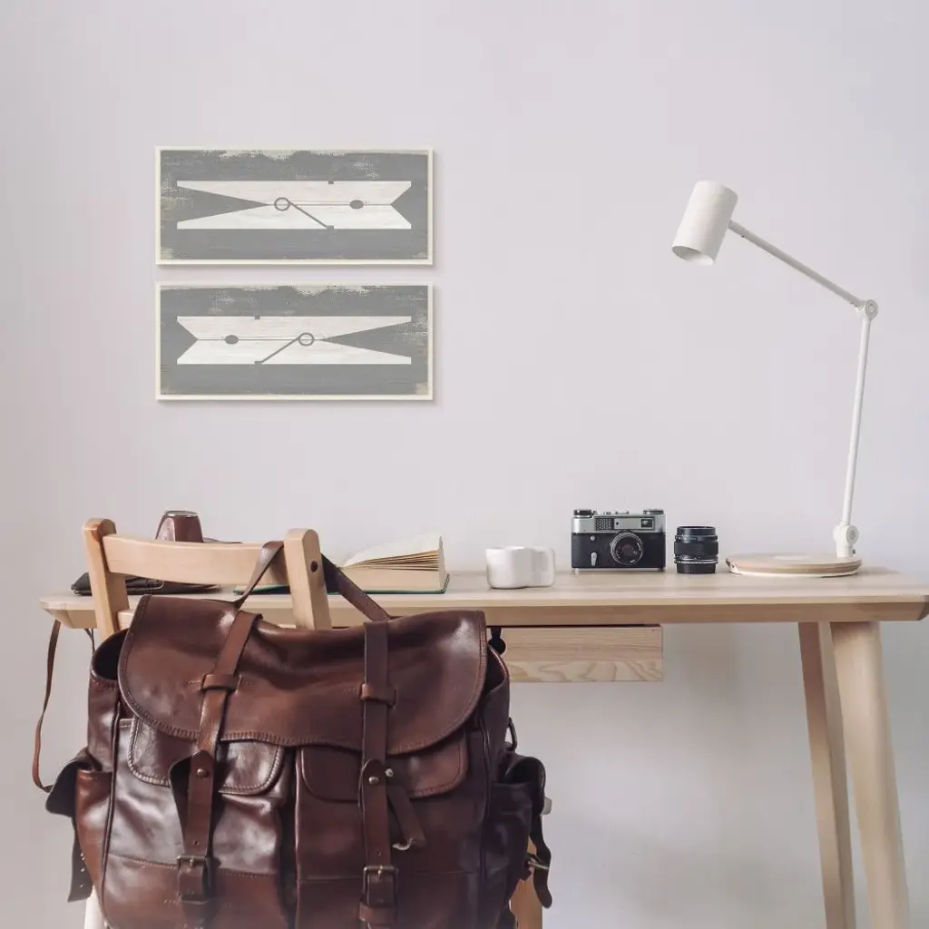 Stupell Simple Laundry Clothespins Distressed Grey Design, 2Pc Multi Piece Canvas Wall Art Set - Off-White - 13 X 30