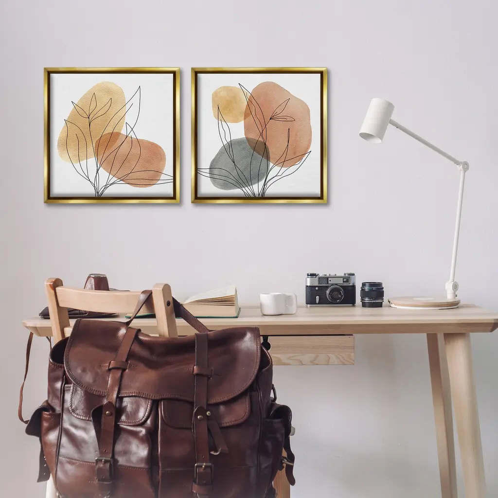 Elevate your home or office to the next level with Stupell Framed Floating Canvas Wall Art. Our premium hand-stretched canvas is mounted securely into a sturdy lightweight frame. The museum-style gap between the wrapped canvas and the box frame gives the illusion of floating artwork. Stupell Wall Art is made in the USA.Features: Dimensions: 2 Piece Set, Each Frame is 18 x 1.7 x 18Two Piece Floating Frame Canvas Products are available as 18"x18" or 25"x25" Panels. All Floating Frame Canvas Products have a 1.7" Depth.Wall Art is Ready to Hang with Hardware Free Hanging. No Installation required. For Easy Set Up Lean or Layer Artwork on Shelf or Against Wall. Artwork is Permently Fixed into the Frame.Our elevated 1.7" Thick Floating Frame is the perfect complement to our canvas style Wall Art. We use only the highest quality inks in house with industry leading printing solutions. Canvas is hand stretched over a durable wood foundation and then mounted securly into a Modern Box Frame. Made in the USA.Artwork Relates To: Rock, Plant, Line work, Simple, Southwestern, BotanicalDesign by Carol Robinson