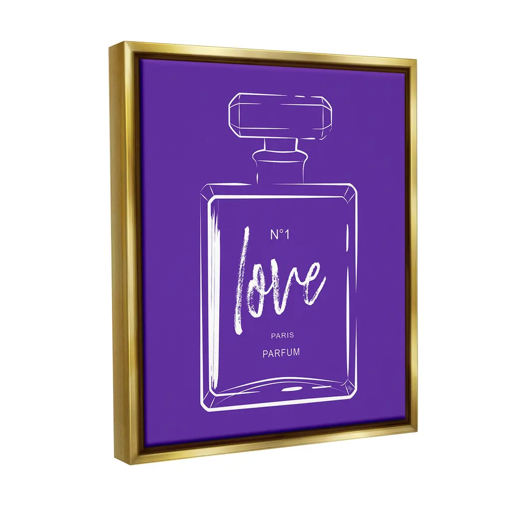 Elevate your home or office to the next level with Stupell Framed Floating Canvas Wall Art. Our premium hand-stretched canvas is mounted securely into a sturdy lightweight frame. The museum-style gap between the wrapped canvas and the box frame gives the illusion of floating artwork. Stupell Wall Art is made in the USA.Features: Dimensions: 17 x 1.7 x 21 Frame, 16 x 1.5 x 20 Canvas ArtFloating Frame Canvas Products are available in sizes 17"x21" and 25"x31". All Floating Frame Canvas Products have a 1.7" Depth.Wall Art is Ready to Hang with Hardware Free Hanging. No Installation required. For Easy Set Up Lean or Layer Artwork on Shelf or Against Wall. Artwork is Permently Fixed into the Frame.Our elevated 1.7" Thick Floating Frame is the perfect complement to our canvas style Wall Art. We use only the highest quality inks in house with industry leading printing solutions. Canvas is hand stretched over a durable wood foundation and then mounted securly into a Modern Box Frame. Made in the USA.Artwork Relates To: Bottle, Perfume, Modern, Glam, Fashion, Minimal, LoveDesign by Martina Pavlova