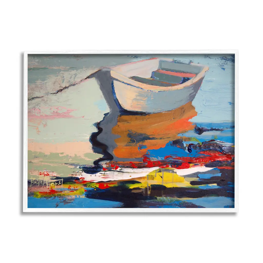 Stupell Simple Rowboat Reflection In Abstract Lake Water Framed Wall Art - Multi-Color - 24 X 30 - Black
