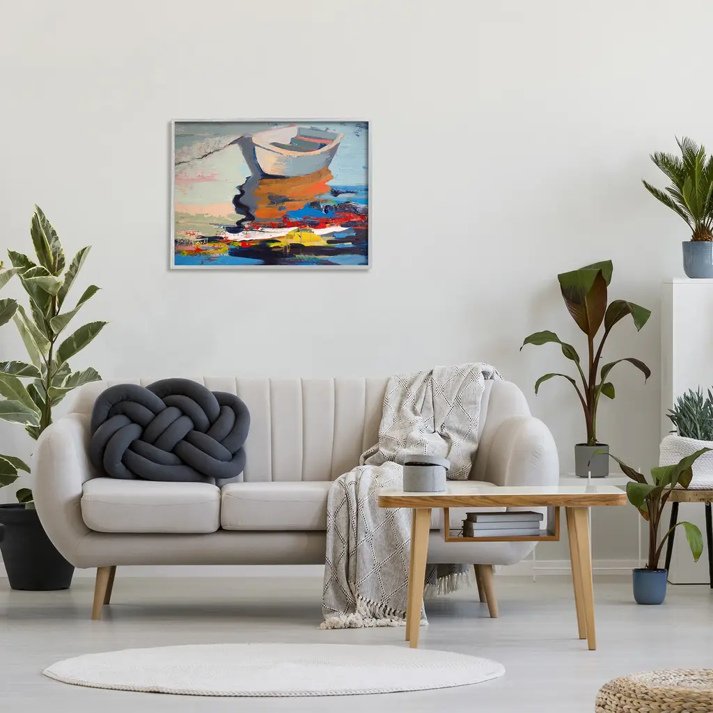 Stupell Simple Rowboat Reflection In Abstract Lake Water Framed Wall Art - Multi-Color - 24 X 30 - Grey