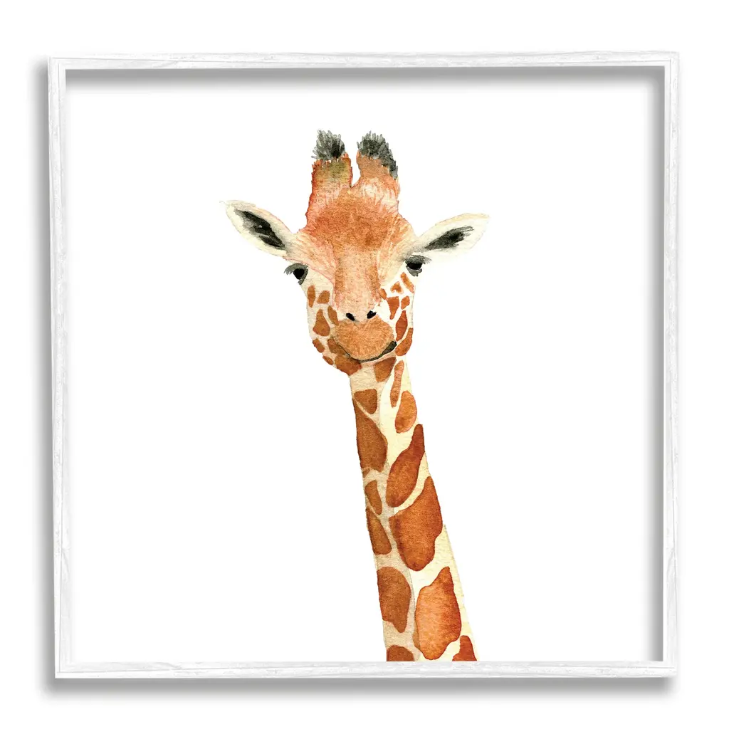Stupell Simple Smiling Giraffe Head Animal Portrait Framed Wall Art - Orange - 12 X 12 - Grey