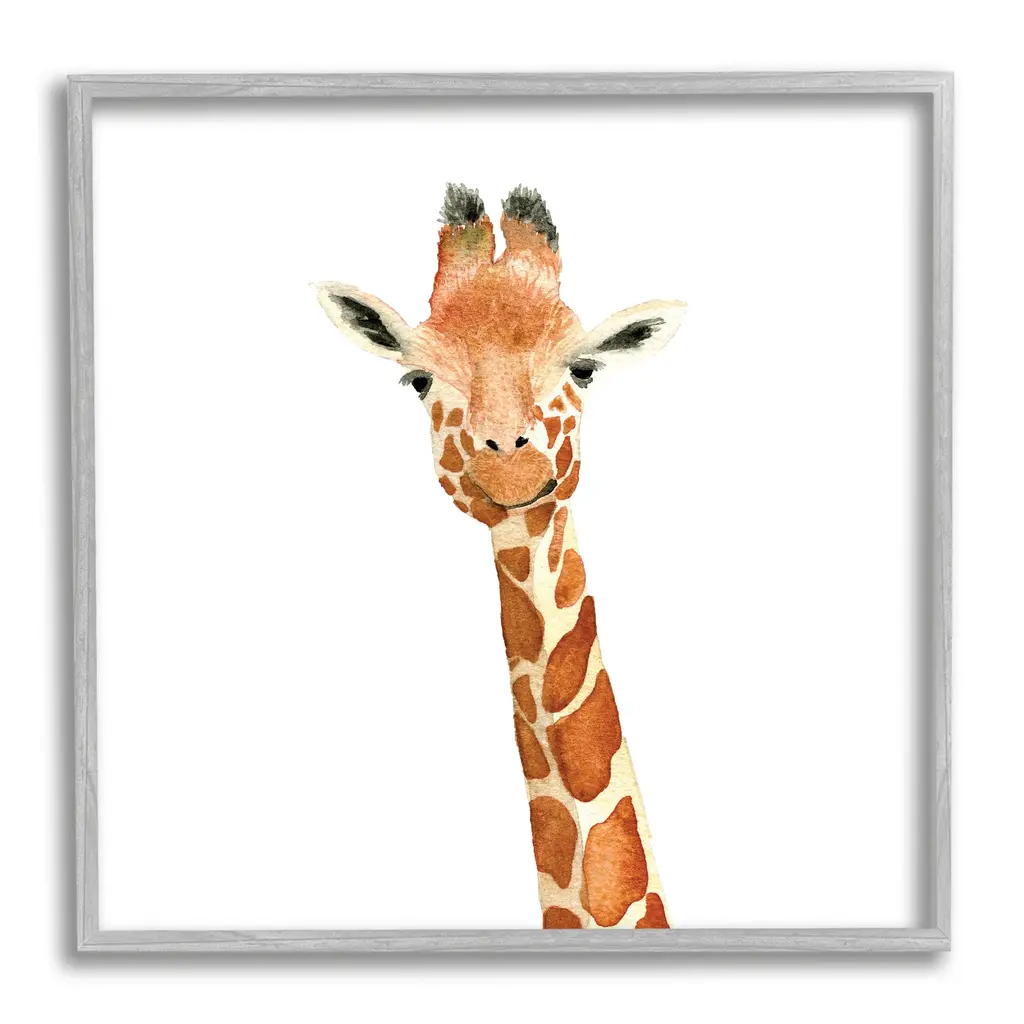 Stupell Simple Smiling Giraffe Head Animal Portrait Framed Wall Art - Orange - 17 X 17 - White