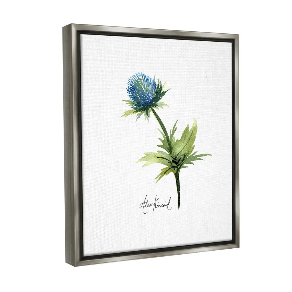 Elevate your home or office to the next level with Stupell Framed Floating Canvas Wall Art. Our premium hand-stretched canvas is mounted securely into a sturdy lightweight frame. The museum-style gap between the wrapped canvas and the box frame gives the illusion of floating artwork. Stupell Wall Art is made in the USA.Features: Dimensions: 17 x 1.7 x 21 Frame, 16 x 1.5 x 20 Canvas ArtFloating Frame Canvas Products are available in sizes 17"x21" and 25"x31". All Floating Frame Canvas Products have a 1.7" Depth.Wall Art is Ready to Hang with Hardware Free Hanging. No Installation required. For Easy Set Up Lean or Layer Artwork on Shelf or Against Wall. Artwork is Permently Fixed into the Frame.Our elevated 1.7" Thick Floating Frame is the perfect complement to our canvas style Wall Art. We use only the highest quality inks in house with industry leading printing solutions. Canvas is hand stretched over a durable wood foundation and then mounted securly into a Modern Box Frame. Made in the USA.Artwork Relates To: Flower, Plant, Thistle, Leaf, Petal, Botanical, Floral, MinimalDesign by Alexandria Gilbert Kincaid