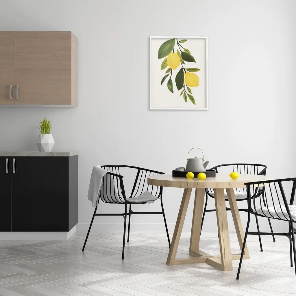 Stupell Simple Yellow Country Lemon Leaf Citrus Fruit Framed Wall Art - Green - 24 X 30 - White