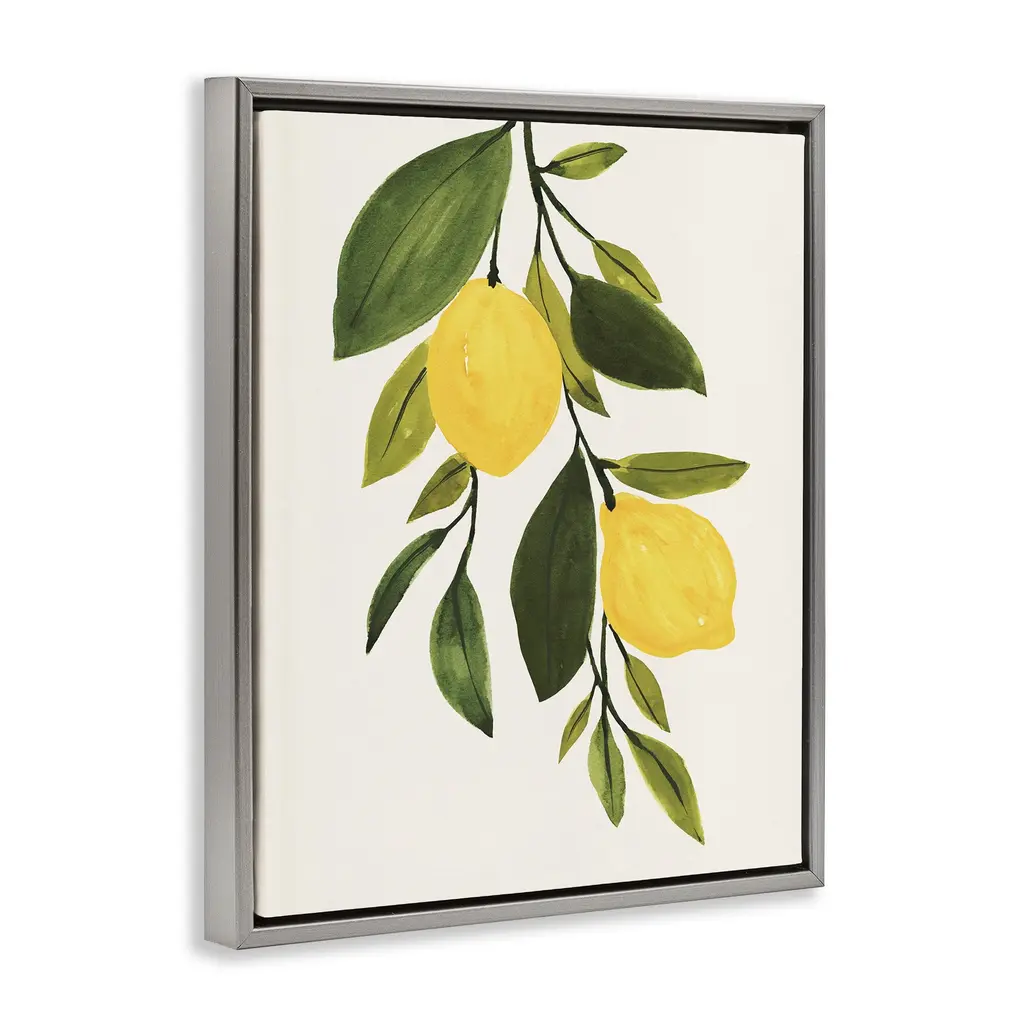 Elevate your home or office to the next level with Stupell Framed Floating Canvas Wall Art. Our premium hand-stretched canvas is mounted securely into a sturdy lightweight frame. The museum-style gap between the wrapped canvas and the box frame gives the illusion of floating artwork. Stupell Wall Art is made in the USA.Features: Dimensions: 17 x 1.7 x 21 Frame, 16 x 1.5 x 20 Canvas ArtFloating Frame Canvas Products are available in sizes 17"x21" and 25"x31". All Floating Frame Canvas Products have a 1.7" Depth.Wall Art is Ready to Hang with Hardware Free Hanging. No Installation required. For Easy Set Up Lean or Layer Artwork on Shelf or Against Wall. Artwork is Permently Fixed into the Frame.Our elevated 1.7" Thick Floating Frame is the perfect complement to our canvas style Wall Art. We use only the highest quality inks in house with industry leading printing solutions. Canvas is hand stretched over a durable wood foundation and then mounted securly into a Modern Box Frame. Made in the USA.Artwork Relates To: Plant, Fruit, Food, Leaf, Produce, Citrus Fruit, Lemon, Kitchen, Country, Traditional, VintageDesign by Annie Warren