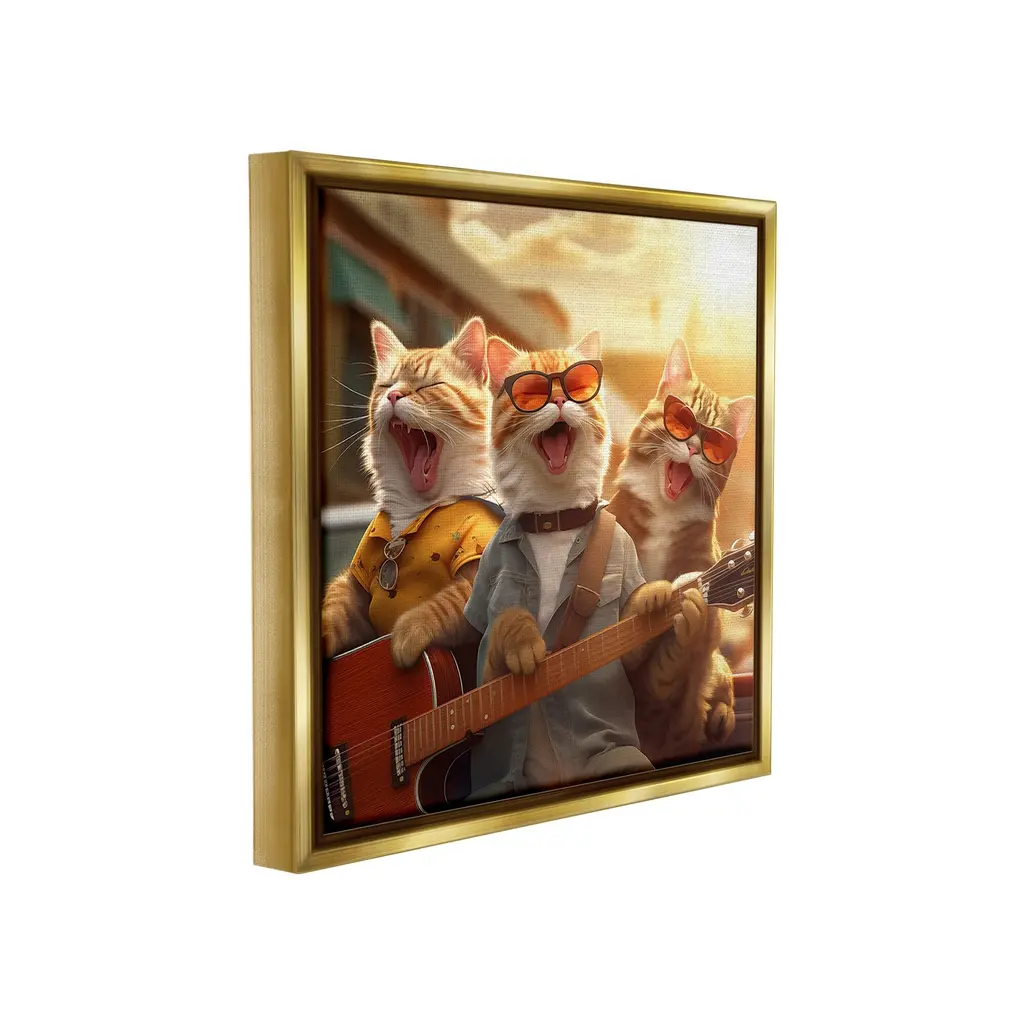 Stupell Singing Guitarist Cats Framed Floater Canvas Wall Art Design By Jim Baldwin - 18 X 18 - Gold