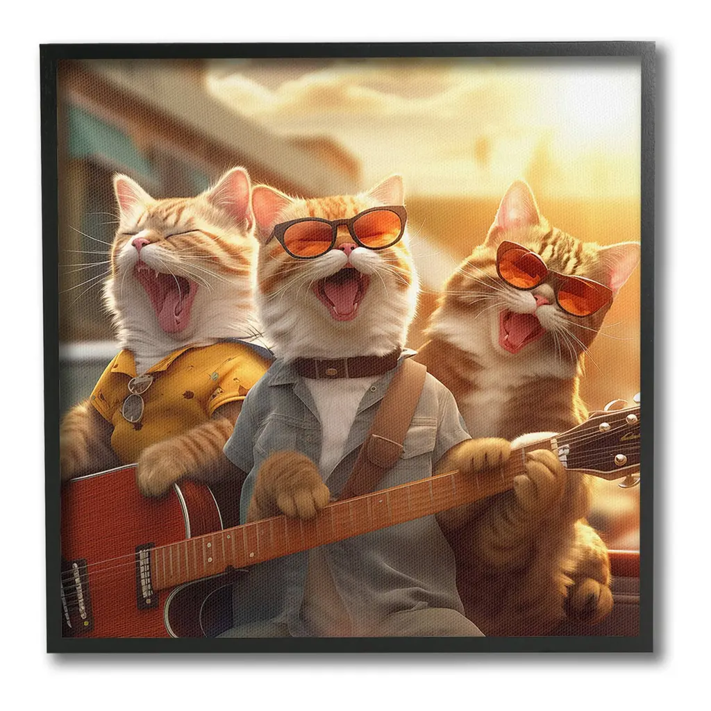 Add dimension to any room with our textured Framed Giclee Artwork. Our framed artwork is securely mounted into a 1.5-inch thick wood grain frame and ready to hang. Frames are available in three alluring styles: black, gray farmhouse and white. In addition, you should check out our oversized options if you want a statement piece. Stupell Wall Art is made in the USA.Features: Dimensions: 12 x 1.5 x 12 FramedFramed Giclee Product Sizes Include 12"x12", 17"x17", and 24"x24". Framed Giclee Products have a 1.5" Depth. Wall Art is Ready to Hang with Hardware Free Hanging. No installation required. For Easy Set Up Lean or Layer Artwork on Shelf or Against Wall.Our giclée prints are carefully mounted on a durable MDF backing, and then perfectly finished in a 1.5 inch thick woodgrain frame. Mounted frame colors include black, gray farmhouse and white. Made In USA.Artwork Relates To: Animal, Cat, Mammal, Pet, Humor, Funny, Music, Musician, GuitarDesign by Jim Baldwin