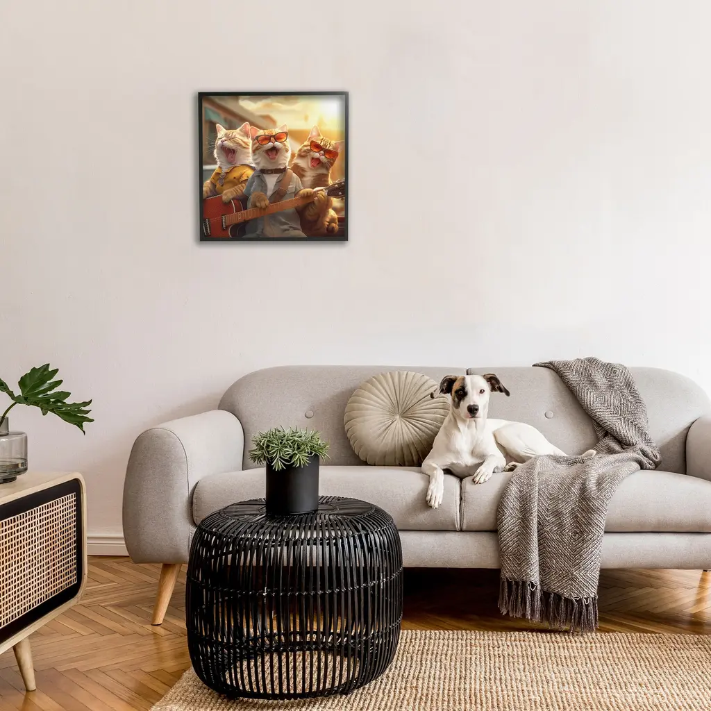 Add dimension to any room with our textured Framed Giclee Artwork. Our framed artwork is securely mounted into a 1.5-inch thick wood grain frame and ready to hang. Frames are available in three alluring styles: black, gray farmhouse and white. In addition, you should check out our oversized options if you want a statement piece. Stupell Wall Art is made in the USA.Features: Dimensions: 12 x 1.5 x 12 FramedFramed Giclee Product Sizes Include 12"x12", 17"x17", and 24"x24". Framed Giclee Products have a 1.5" Depth. Wall Art is Ready to Hang with Hardware Free Hanging. No installation required. For Easy Set Up Lean or Layer Artwork on Shelf or Against Wall.Our giclée prints are carefully mounted on a durable MDF backing, and then perfectly finished in a 1.5 inch thick woodgrain frame. Mounted frame colors include black, gray farmhouse and white. Made In USA.Artwork Relates To: Animal, Cat, Mammal, Pet, Humor, Funny, Music, Musician, GuitarDesign by Jim Baldwin