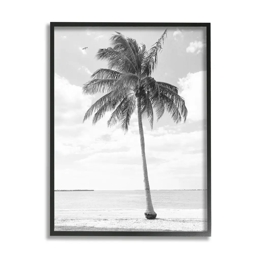 Stupell Single Palm Tree Monochrome Tropical Beach Plant Framed Wall Art, Design By Graffitee Studios - Grey - 16 X 20 - White