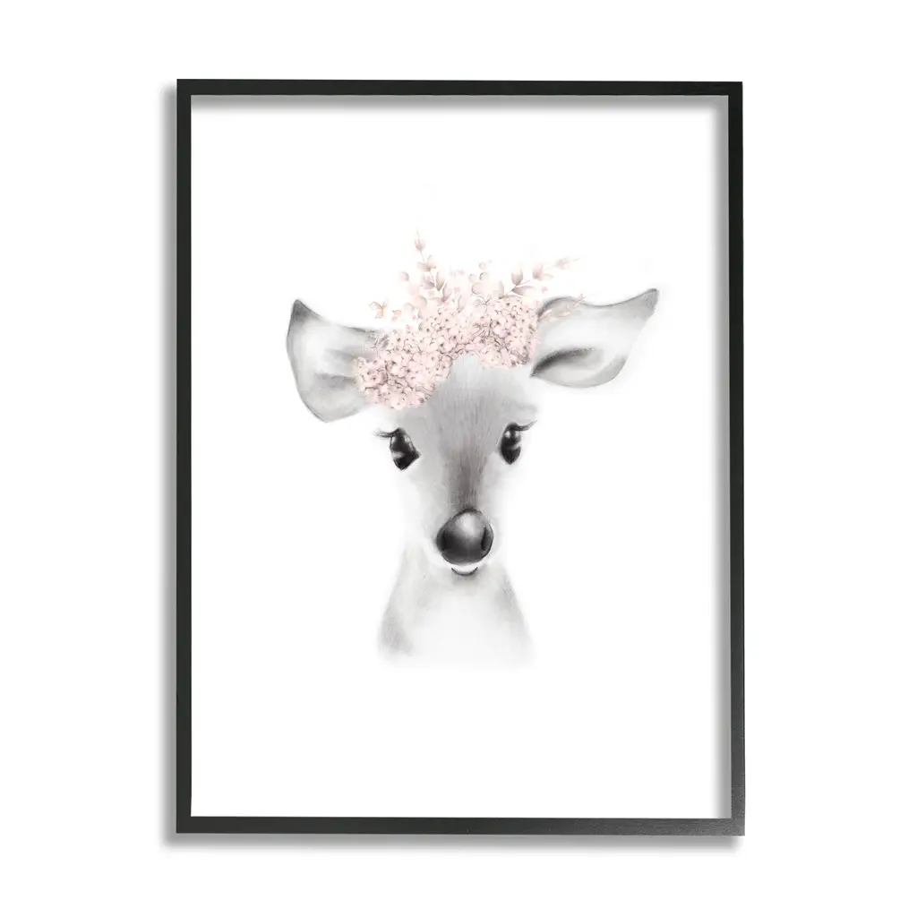 Stupell Sketched Fluffy Deer Flowers Framed Giclee Texturized Art, 11 X 1.5 X 14, Made In Usa, Design By Studio Q - Multi-Color - 16 X 20 - White