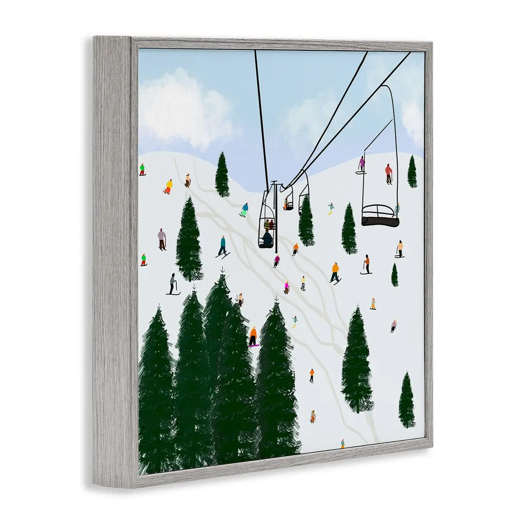Stupell Ski Lift Mountain Landscape Busy Slopes Winter Athletes Framed Wall Art - 17 X 17 - Grey