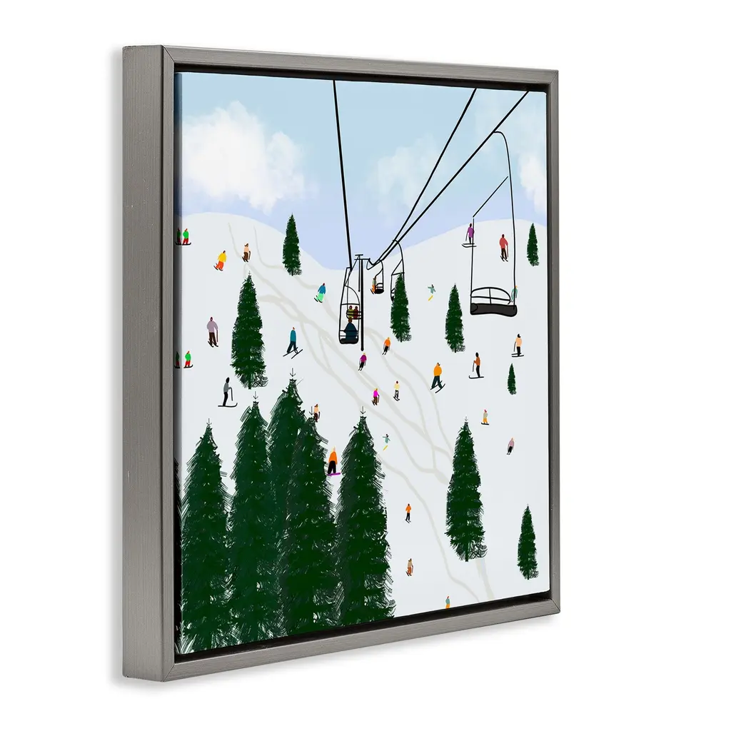 Elevate your home or office to the next level with Stupell Framed Floating Canvas Wall Art. Our premium hand-stretched canvas is mounted securely into a sturdy lightweight frame. The museum-style gap between the wrapped canvas and the box frame gives the illusion of floating artwork. Stupell Wall Art is made in the USA.Features: Dimensions: 18 x 1.7 x 18 Frame, 17 x 1.5 x 17 Canvas ArtFloating Frame Canvas Products are available in sizes 18"x18" and 25"x25". All Floating Frame Canvas Products have a 1.7" Depth.Wall Art is Ready to Hang with Hardware Free Hanging. No Installation required. For Easy Set Up Lean or Layer Artwork on Shelf or Against Wall. Artwork is Permently Fixed into the Frame.Our elevated 1.7" Thick Floating Frame is the perfect complement to our canvas style Wall Art. We use only the highest quality inks in house with industry leading printing solutions. Canvas is hand stretched over a durable wood foundation and then mounted securly into a Modern Box Frame. Made in the USA.Artwork Relates To: Ski, Mountain, Sports, Winter, Snow, Ski Lodge, PeopleDesign by Ashley Singleton