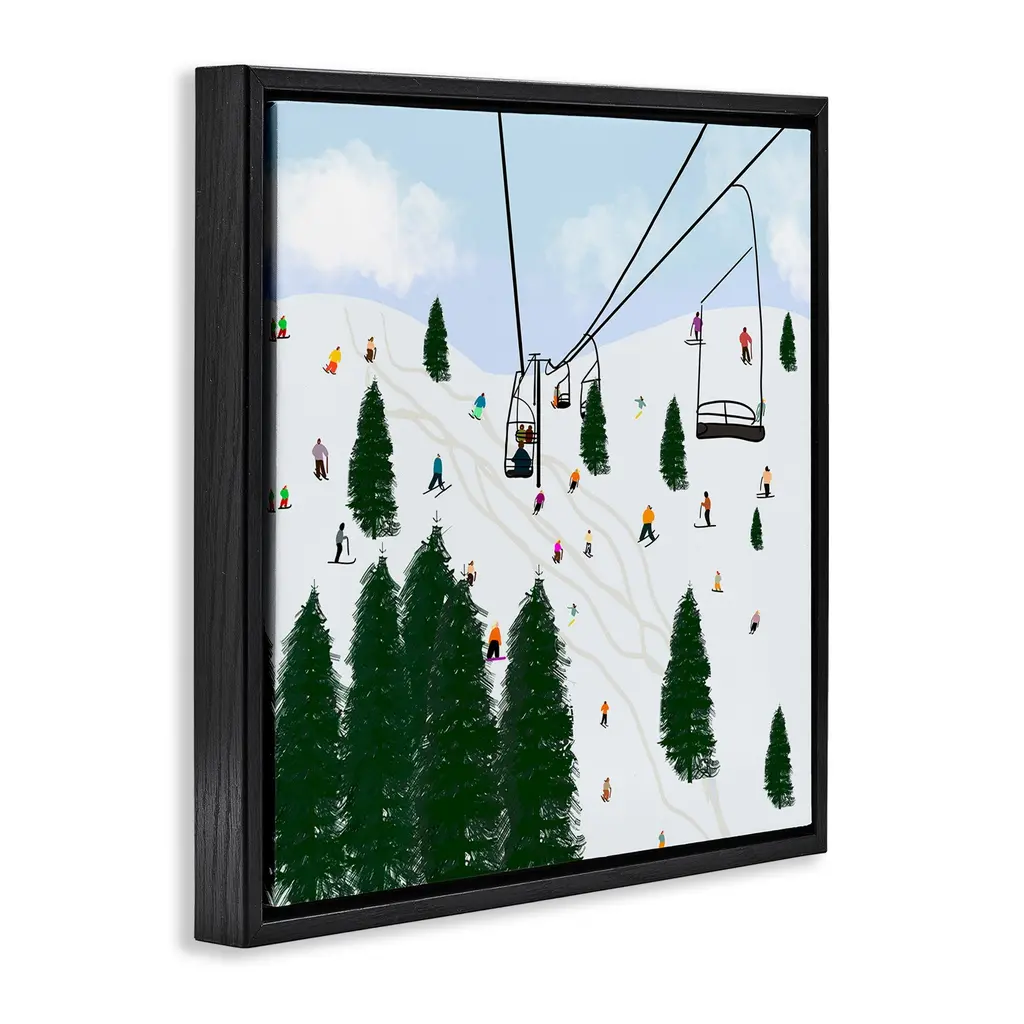 Elevate your home or office to the next level with Stupell Framed Floating Canvas Wall Art. Our premium hand-stretched canvas is mounted securely into a sturdy lightweight frame. The museum-style gap between the wrapped canvas and the box frame gives the illusion of floating artwork. Stupell Wall Art is made in the USA.Features: Dimensions: 18 x 1.7 x 18 Frame, 17 x 1.5 x 17 Canvas ArtFloating Frame Canvas Products are available in sizes 18"x18" and 25"x25". All Floating Frame Canvas Products have a 1.7" Depth.Wall Art is Ready to Hang with Hardware Free Hanging. No Installation required. For Easy Set Up Lean or Layer Artwork on Shelf or Against Wall. Artwork is Permently Fixed into the Frame.Our elevated 1.7" Thick Floating Frame is the perfect complement to our canvas style Wall Art. We use only the highest quality inks in house with industry leading printing solutions. Canvas is hand stretched over a durable wood foundation and then mounted securly into a Modern Box Frame. Made in the USA.Artwork Relates To: Ski, Mountain, Sports, Winter, Snow, Ski Lodge, PeopleDesign by Ashley Singleton