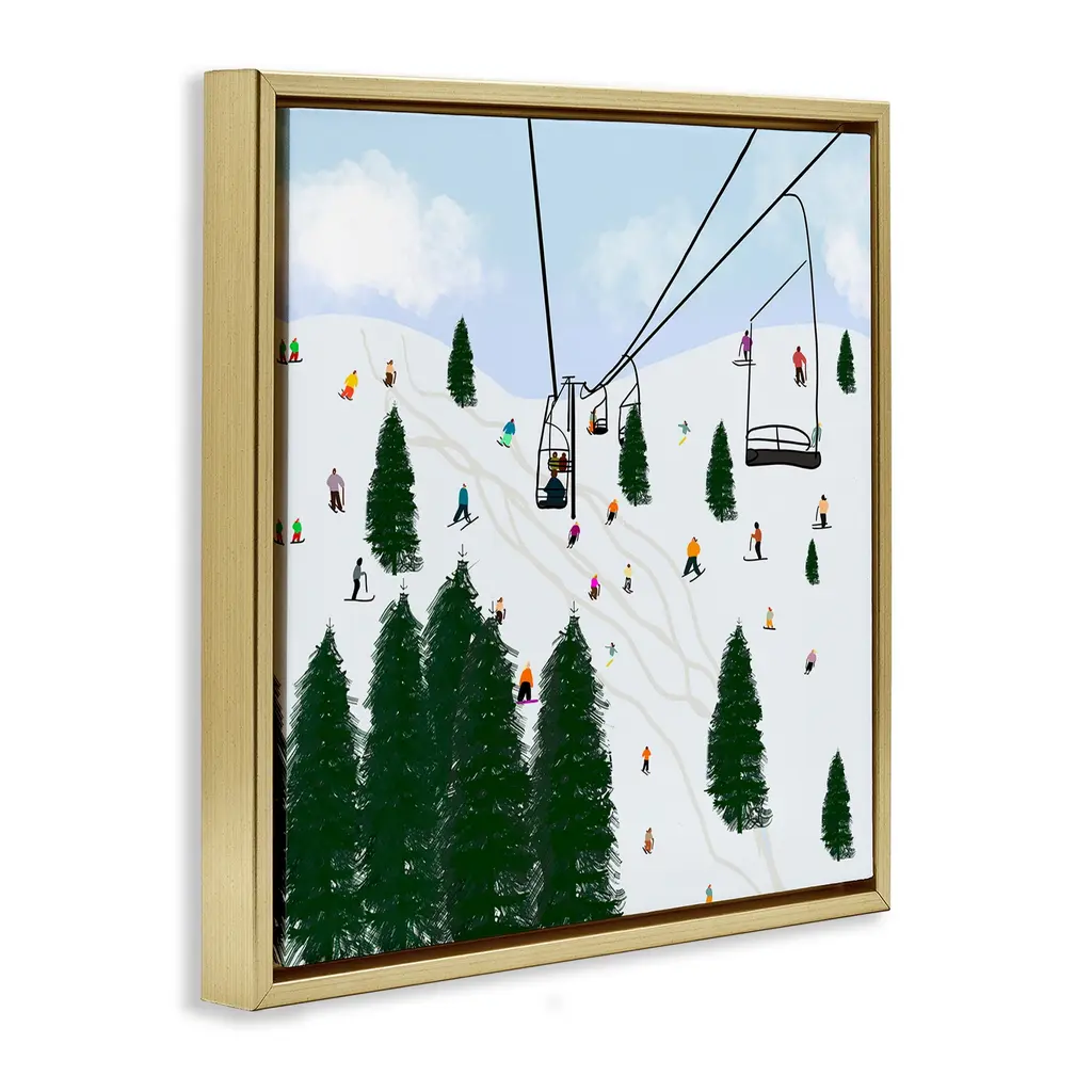 Elevate your home or office to the next level with Stupell Framed Floating Canvas Wall Art. Our premium hand-stretched canvas is mounted securely into a sturdy lightweight frame. The museum-style gap between the wrapped canvas and the box frame gives the illusion of floating artwork. Stupell Wall Art is made in the USA.Features: Dimensions: 18 x 1.7 x 18 Frame, 17 x 1.5 x 17 Canvas ArtFloating Frame Canvas Products are available in sizes 18"x18" and 25"x25". All Floating Frame Canvas Products have a 1.7" Depth.Wall Art is Ready to Hang with Hardware Free Hanging. No Installation required. For Easy Set Up Lean or Layer Artwork on Shelf or Against Wall. Artwork is Permently Fixed into the Frame.Our elevated 1.7" Thick Floating Frame is the perfect complement to our canvas style Wall Art. We use only the highest quality inks in house with industry leading printing solutions. Canvas is hand stretched over a durable wood foundation and then mounted securly into a Modern Box Frame. Made in the USA.Artwork Relates To: Ski, Mountain, Sports, Winter, Snow, Ski Lodge, PeopleDesign by Ashley Singleton