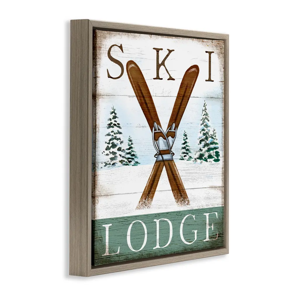 Elevate your home or office to the next level with Stupell Framed Floating Canvas Wall Art. Our premium hand-stretched canvas is mounted securely into a sturdy lightweight frame. The museum-style gap between the wrapped canvas and the box frame gives the illusion of floating artwork. Stupell Wall Art is made in the USA.Features: Dimensions: 18 x 1.7 x 18 Frame, 17 x 1.5 x 17 Canvas ArtFloating Frame Canvas Products are available in sizes 18"x18" and 25"x25". All Floating Frame Canvas Products have a 1.7" Depth.Wall Art is Ready to Hang with Hardware Free Hanging. No Installation required. For Easy Set Up Lean or Layer Artwork on Shelf or Against Wall. Artwork is Permently Fixed into the Frame.Our elevated 1.7" Thick Floating Frame is the perfect complement to our canvas style Wall Art. We use only the highest quality inks in house with industry leading printing solutions. Canvas is hand stretched over a durable wood foundation and then mounted securly into a Modern Box Frame. Made in the USA.Artwork Relates To: Ski, Mountain, Sports, Winter, Snow, Ski LodgeDesign by Elizabeth Tyndall