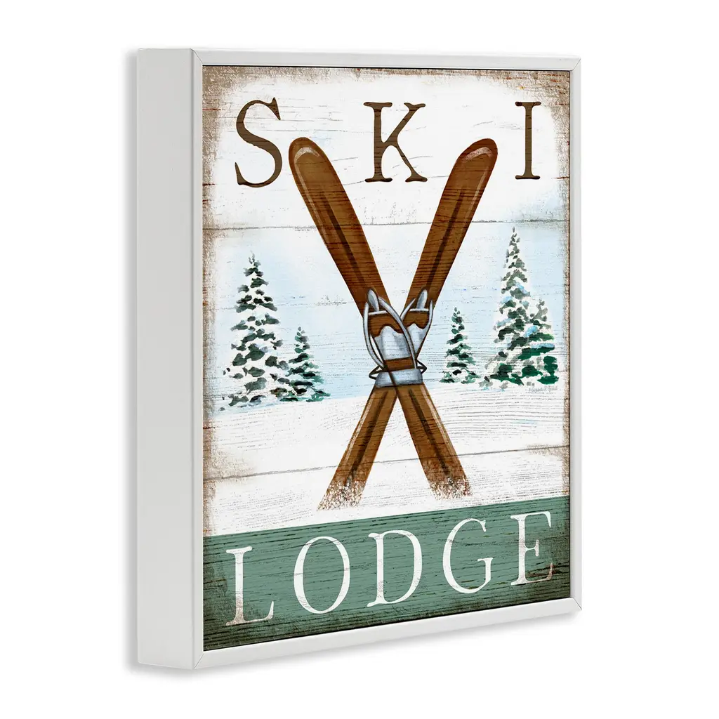 Stupell Ski Lodge Rustic Cabin Sign Snowy Tree Forest Framed Wall Art - 12 X 12 - White