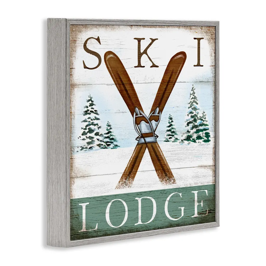 Stupell Ski Lodge Rustic Cabin Sign Snowy Tree Forest Framed Wall Art - 17 X 17 - Grey