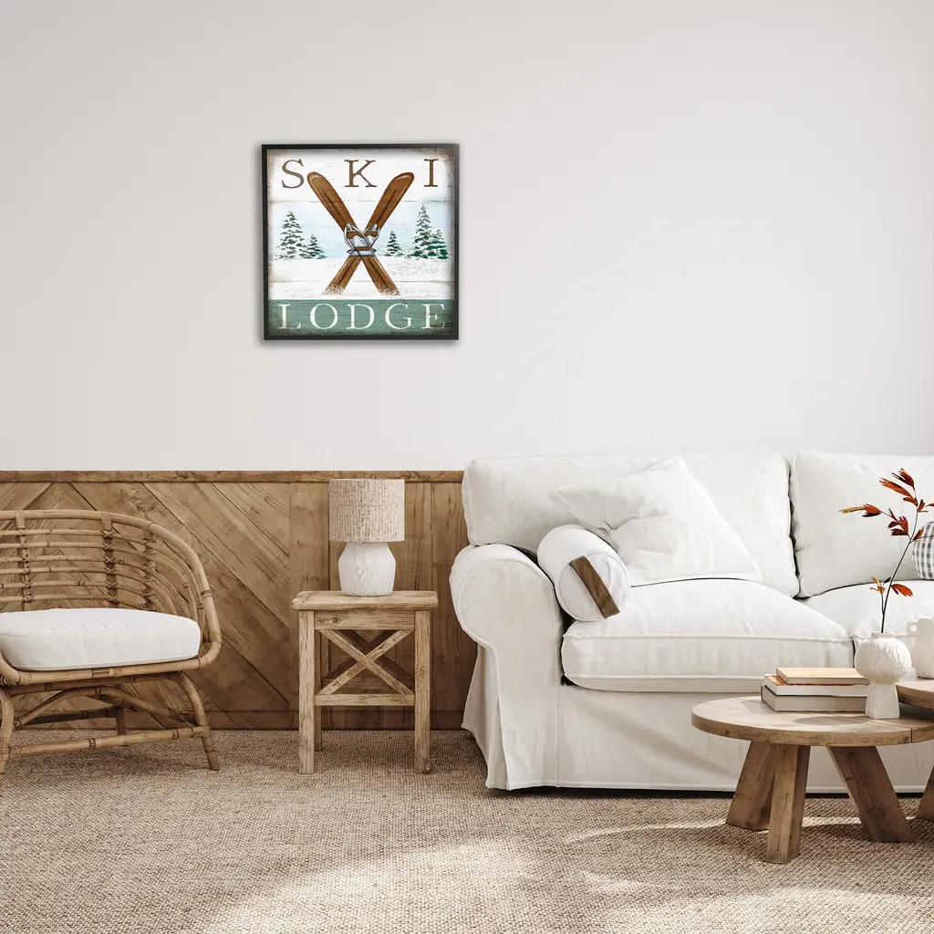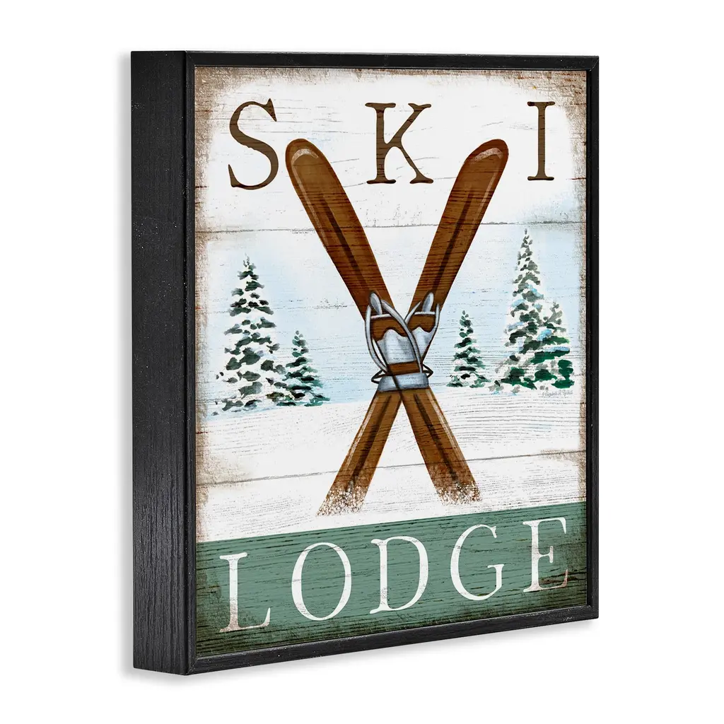 Stupell Ski Lodge Rustic Cabin Sign Snowy Tree Forest Framed Wall Art - 24 X 24 - Black