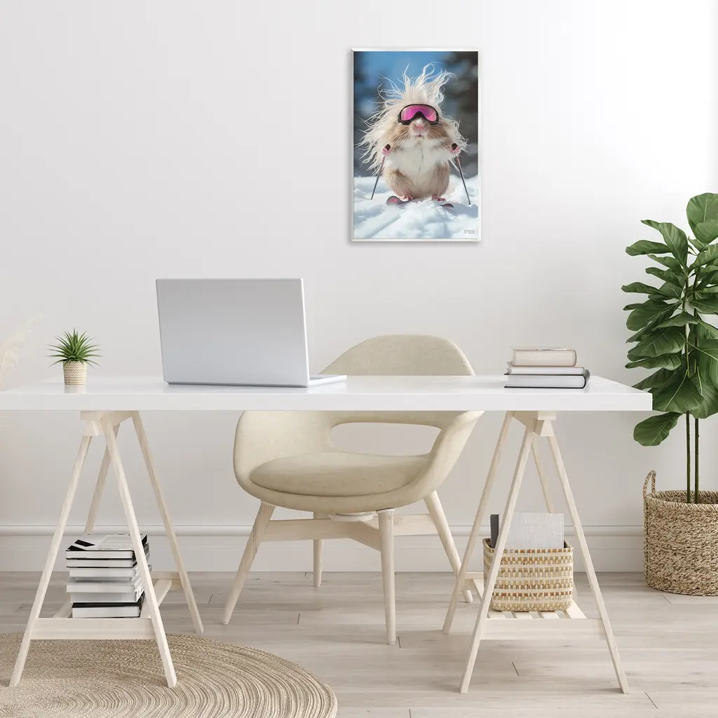 Our wall plaques start as high-quality lithograph prints mounted on durable 0.5-inch thick MDF wood. Each piece is hand finished and comes with a fresh layer of white foil on the sides to give it a crisp, clean look. Plaques arrive ready to hang without installation and come with removable plastic corners to keep them from damage in transit. Stupell Wall Art is made in the USA.Features: Dimensions: 10 x 0.5 x 15 InchesWall Plaque Product Sizes Include 10"x15" and 13"x19". All wall plaque products have a 0.5" Depth. Wall Art is Ready to Hang with Hardware Free Hanging. No installation required. For Easy Set Up Lean or Layer Artwork on Shelf or Against Wall.All of our wall plaques start off as high quality lithograph prints that are then mounted on durable 0.5 inch thick MDF wood. Each piece is hand finished and comes with a fresh layer of foil on the sides to give it a crisp clean look. Made In USA.Artwork Relates To: Animal, Pet, Rodent, Hamster, Snow, Skiing, Sport, HumorDesign by Roozbeh Bahramali