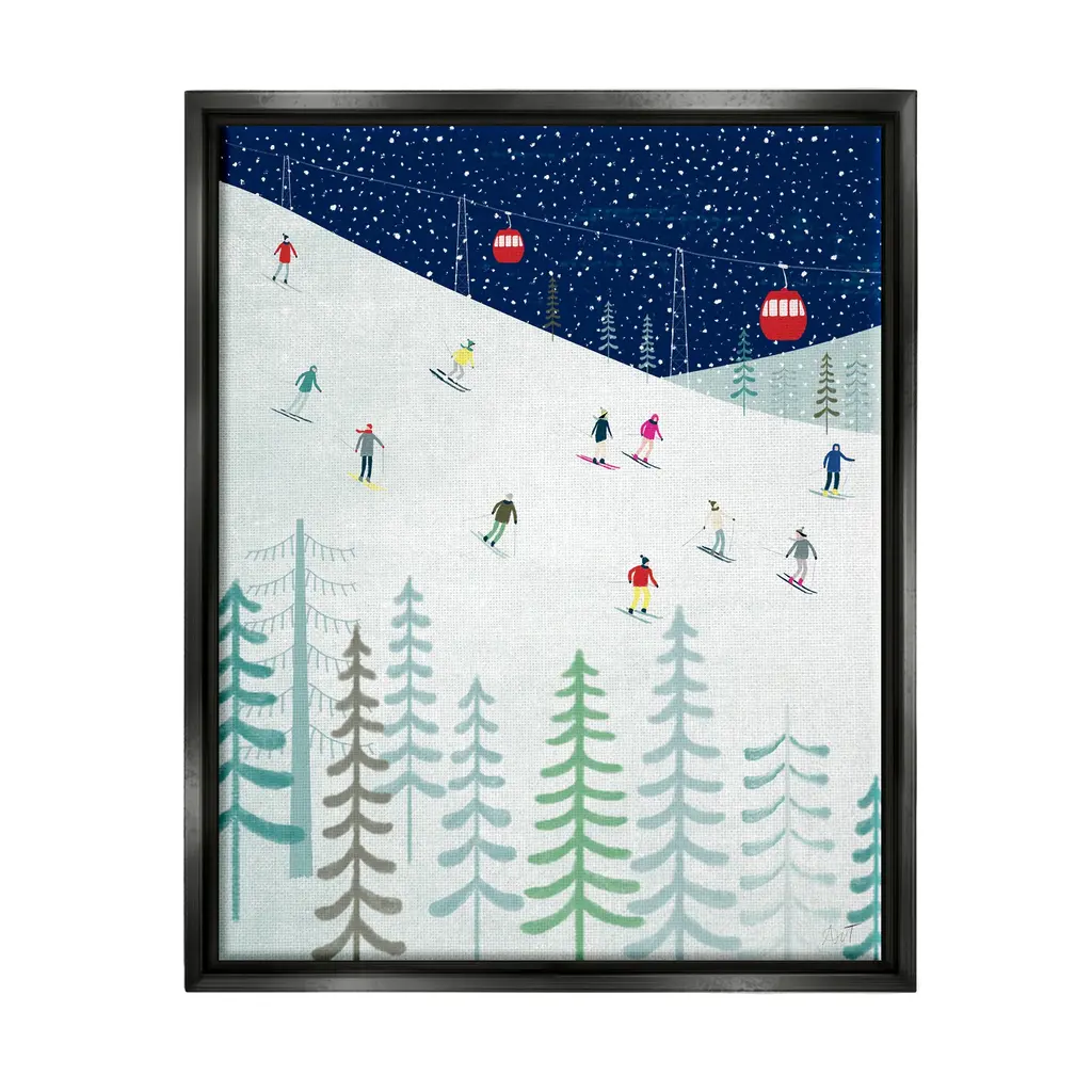 Stupell Skiing Night Sky Winter Slopes Framed Floater Canvas Wall Art By Andrew Thornton - 24 X 30 - Black