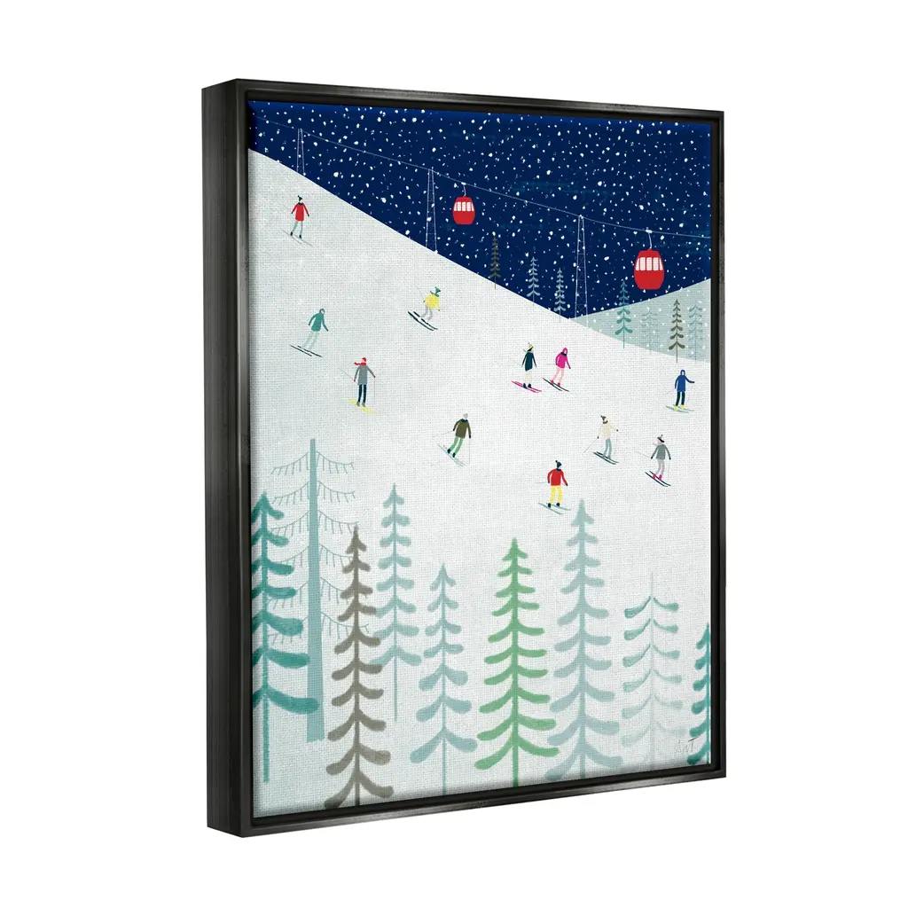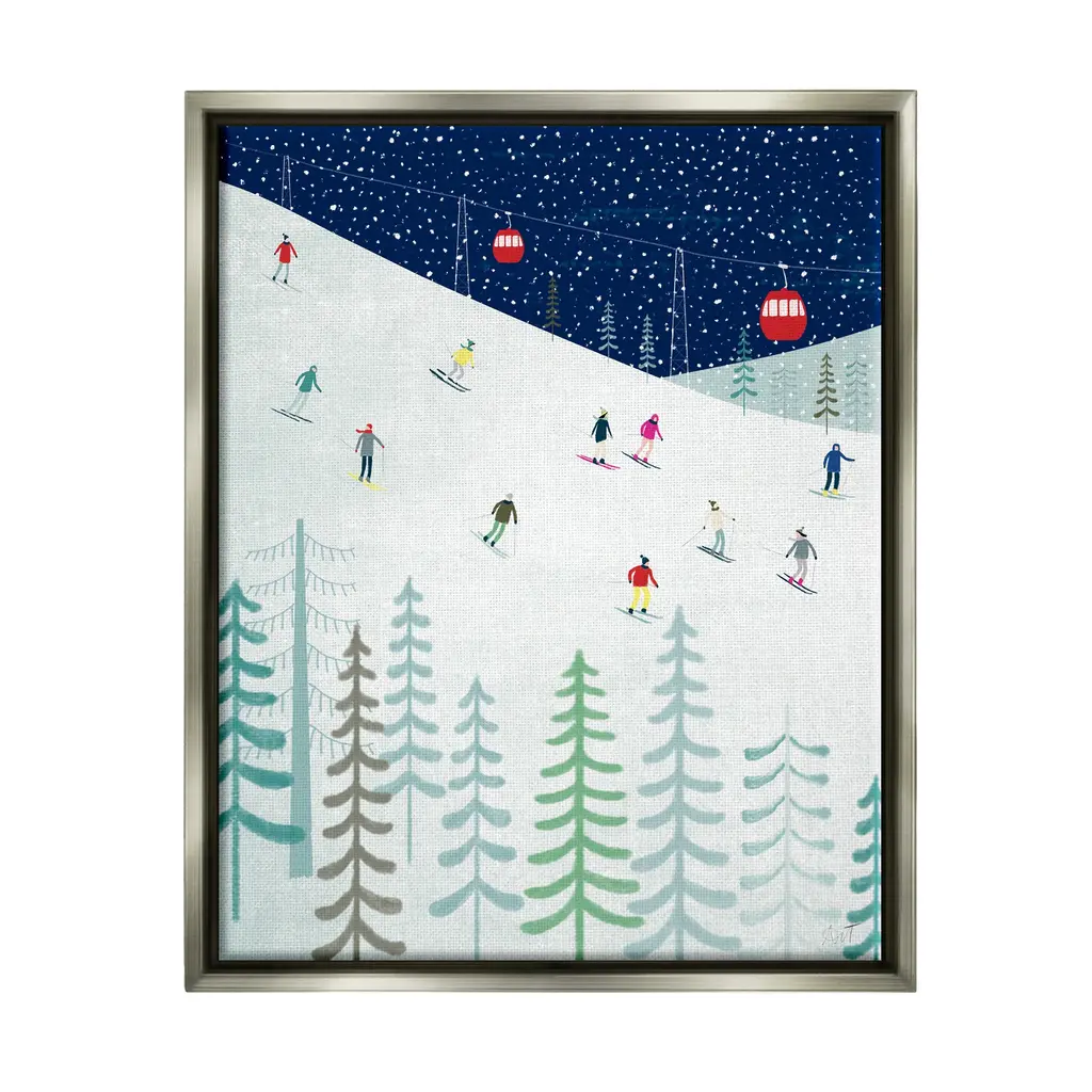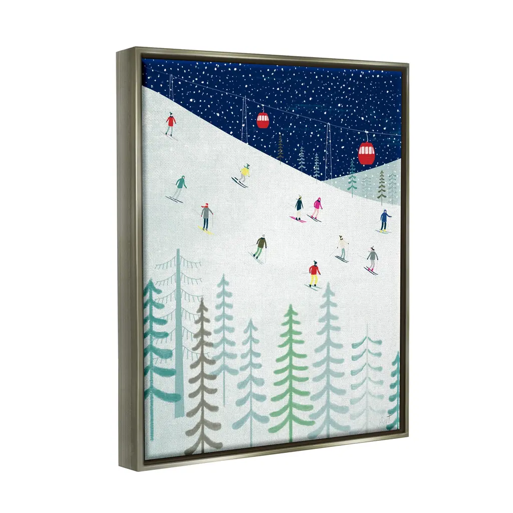 Stupell Skiing Night Sky Winter Slopes Framed Floater Canvas Wall Art By Andrew Thornton - 24 X 30 - Grey