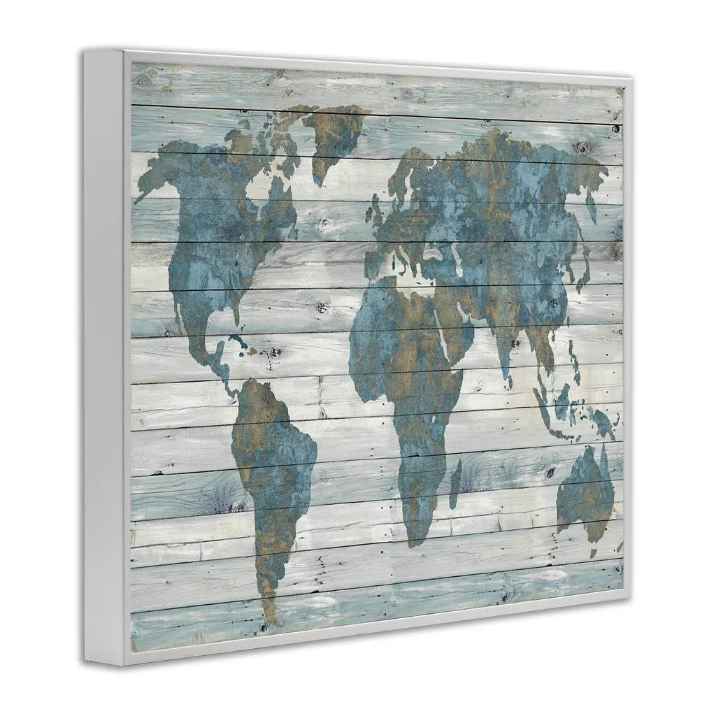 Showcase the world on your wall with this weathered world map wall art. This giclee lithograph recreates a well-worn map in blues and tans against a backdrop of rustic wood. With a brushstroke finish, this piece offers an authentic textured appeal, and the included deep framing adds further dimension.Features: Wall Art is Ready to Hang - No Installation or Hardware Needed. For Easy Set Up Lean or Layer Artwork on Shelf or Against Wall.Our giclée prints are carefully mounted on a durable MDF backing, and then perfectly finished in a 1.5 inch thick woodgrain frame. Frame colors include black, gray farmhouse and white. Made In USA.Artwork Ideal for any Living Room, Den, Entryway, Bedroom, Office, Kitchen or Bathroom.Design By Jamie MacDowell