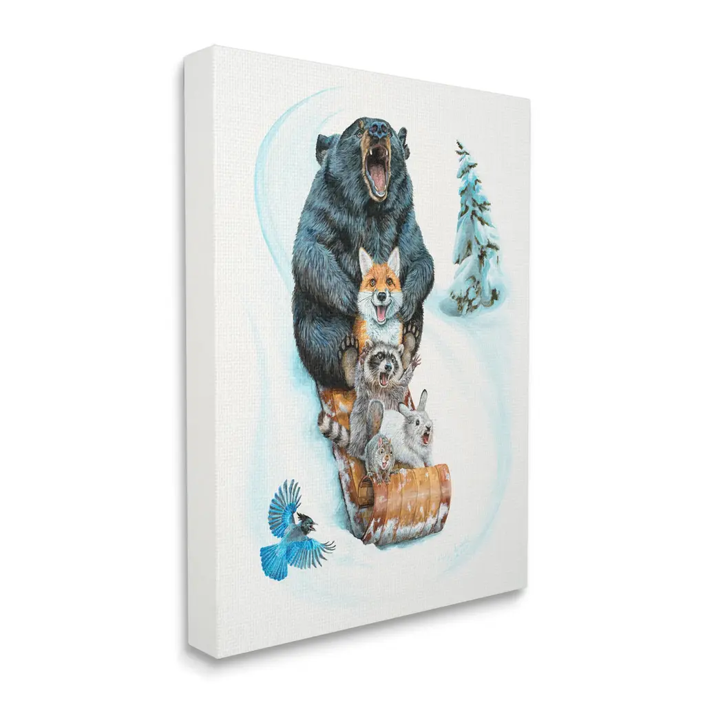 Stupell Sledding Wildlife Snow Scene Canvas Wall Art Design By Holly Simental - 24 X 30