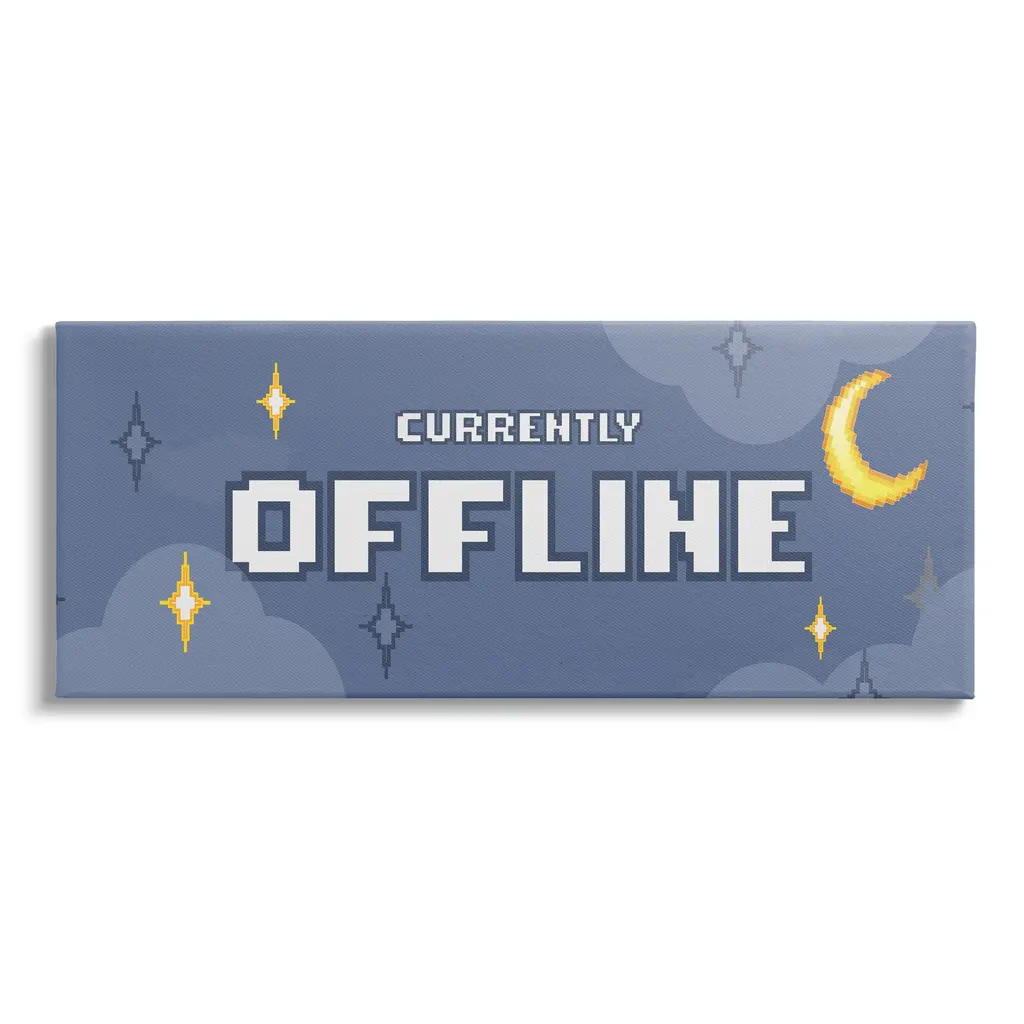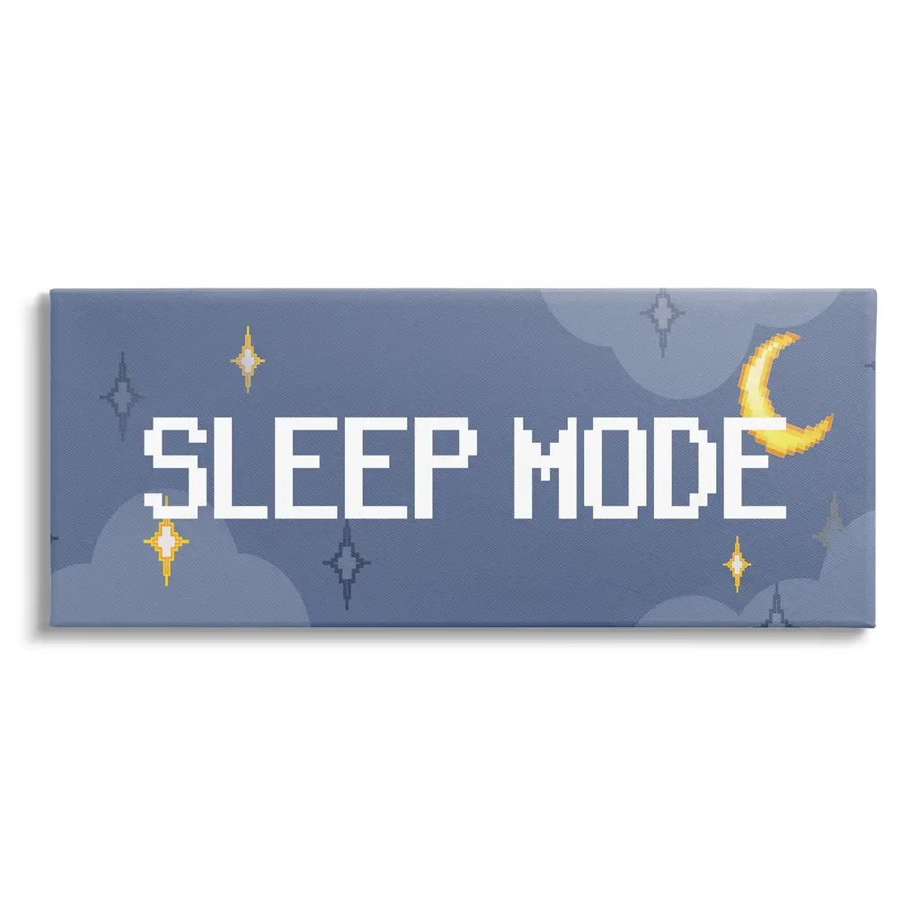 We create our stretched canvas to the highest standards. Using only the highest quality inks and canvas on Mimaki printers, we hand-cut and stretch each piece over a 1.5-inch thick wooden frame for hanging. As a result, the art comes ready to hang on the sturdy ledge with no installation required. Stupell Wall Art is made in the USA.Features: Dimensions: 16 x 1.5 x 20 InchesStretched Canvas Sizes Include Standard: 16 x 1.5 x 20 Large: 20 x 1.5 x 30 X-Large: 30 x 1.5 x 40 Oversized: 36 x 1.5 x 48Wall Art is Ready to Hang with Hardware Free Hanging. No installation required. For Easy Set Up Lean or Layer Artwork on Shelf or Against Wall.Our stretched canvas is created with the highest standards. We use only the highest quality inks and canvas on our in house Mimaki printers, and then hand cut and stretch each piece over a 1.5 inch thick wooden frame for hanging. Made In USA.Artwork Relates To: Gaming, Video Game, Gamer, Controller, Moon, Stars, Pixel, Sleep ModeDesign by Lil' Rue