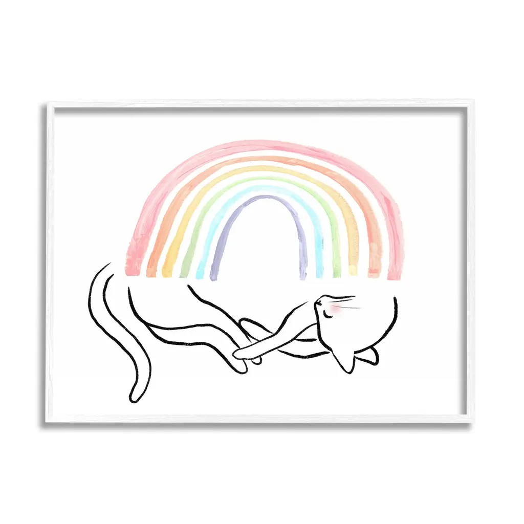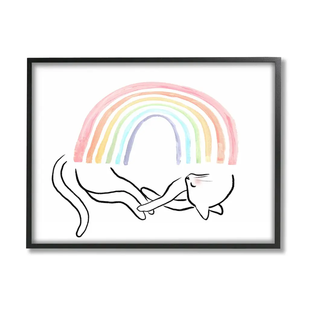 Add dimension to any room with our textured Framed Giclee Artwork. Our framed artwork is securely mounted into a 1.5-inch thick wood grain frame and ready to hang. Frames are available in three alluring styles: black, gray farmhouse and white. In addition, you should check out our oversized options if you want a statement piece. Stupell Wall Art is made in the USA.Features: Dimensions: 14 x 1.5 x 11 FramedFramed Giclee Sizes Include Standard: 14 x 1.5 x 11 Large: 20 x 1.5 x 16 Oversized: 30 x 1.5 x 24Wall Art is Ready to Hang - No Installation or Hardware Needed. For Easy Set Up Lean or Layer Artwork on Shelf or Against Wall.Our giclée prints are carefully mounted on a durable MDF backing, and then perfectly finished in a 1.5 inch thick woodgrain frame. Mounted frame colors include black, gray farmhouse and white. Made In USA.Artwork Relates To: Animal, Mammal, Cat, RainbowDesign by Lil' Rue