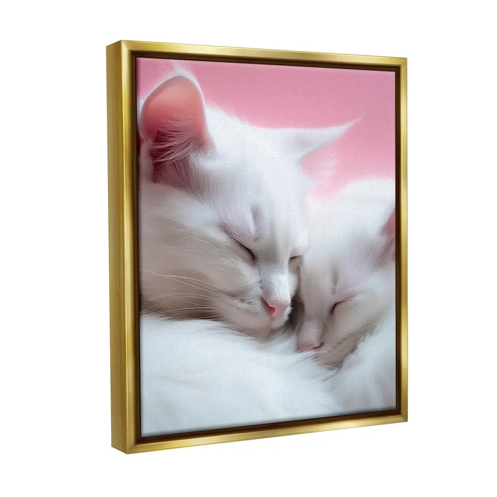 Elevate your home or office to the next level with Stupell Framed Floating Canvas Wall Art. Our premium hand-stretched canvas is mounted securely into a sturdy lightweight frame. The museum-style gap between the wrapped canvas and the box frame gives the illusion of floating artwork. Stupell Wall Art is made in the USA.Features: Dimensions: 17 x 1.7 x 21 Frame, 16 x 1.5 x 20 Canvas ArtFloating Frame Canvas Products are available in sizes 17"x21" and 25"x31". All Floating Frame Canvas Products have a 1.7" Depth.Wall Art is Ready to Hang with Hardware Free Hanging. No Installation required. For Easy Set Up Lean or Layer Artwork on Shelf or Against Wall. Artwork is Permently Fixed into the Frame.Our elevated 1.7" Thick Floating Frame is the perfect complement to our canvas style Wall Art. We use only the highest quality inks in house with industry leading printing solutions. Canvas is hand stretched over a durable wood foundation and then mounted securly into a Modern Box Frame. Made in the USA.Artwork Relates To: Angora, Animal, Cat, Mammal, Pet, Kitten, Sleeping, Cuddle, CozyDesign by RB