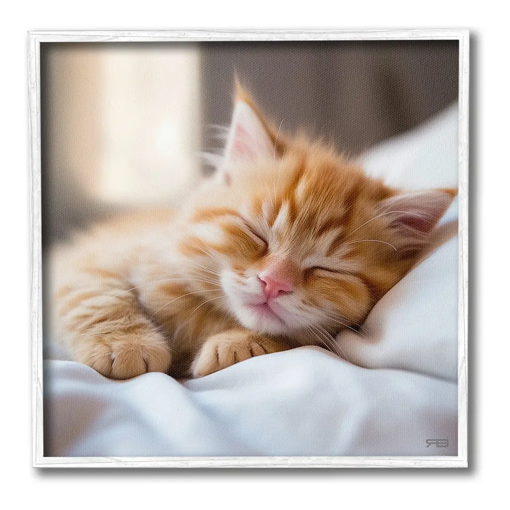 Stupell Sleeping Orange Kitten Framed Giclee Art Design By Rb - 12 X 12 - White