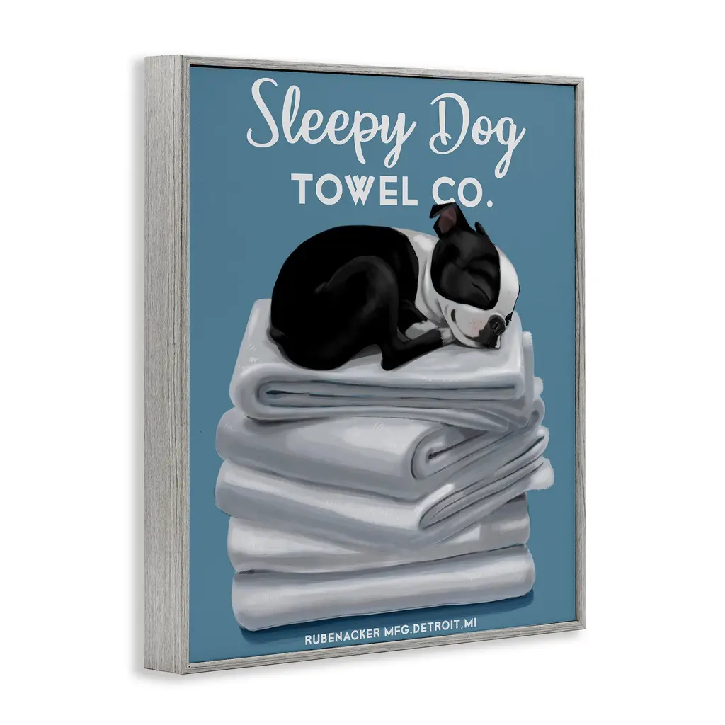 Stupell Sleepy Dog Towel Co. Adorable Boston Terrier Bathroom Framed Wall Art - 11 X 14 - Grey