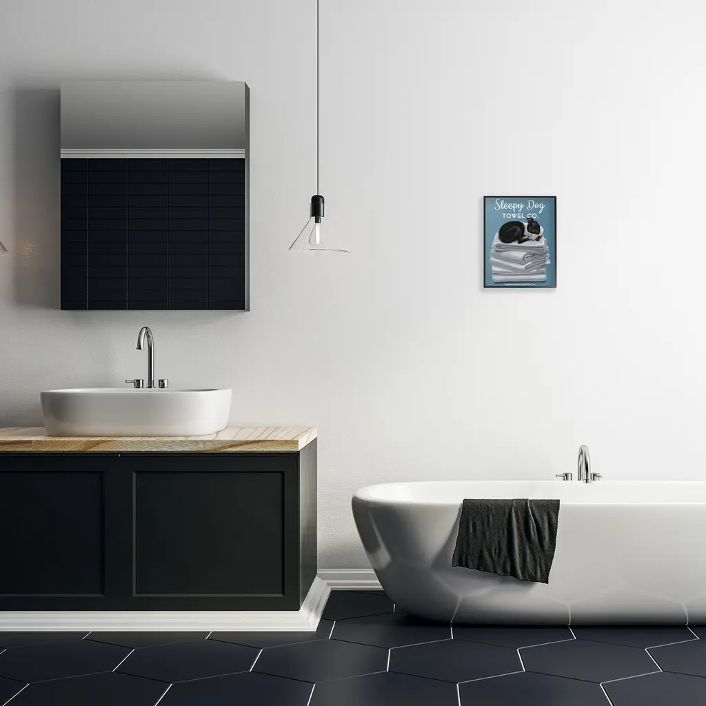 Stupell Sleepy Dog Towel Co. Adorable Boston Terrier Bathroom Framed Wall Art - 24 X 30 - White